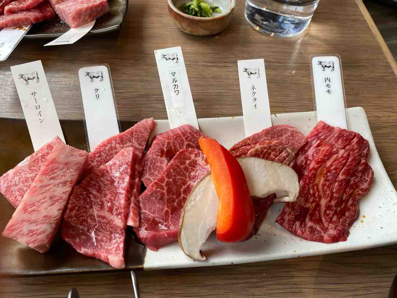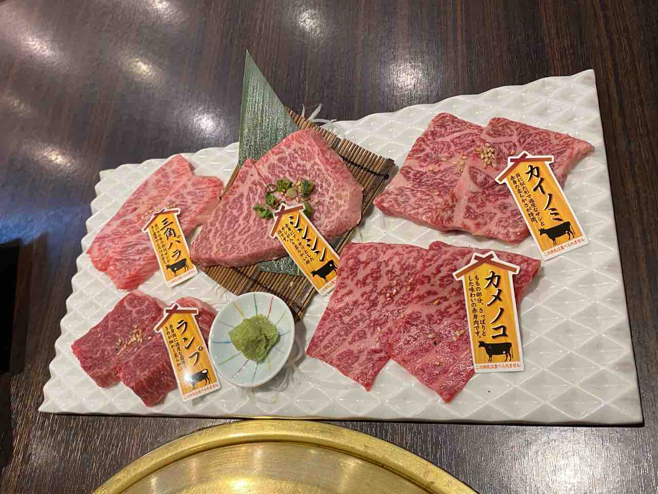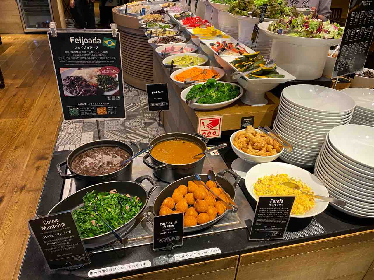 スタッフの人がテーブルで切り分けてくれるお肉とビュッフェの内容。