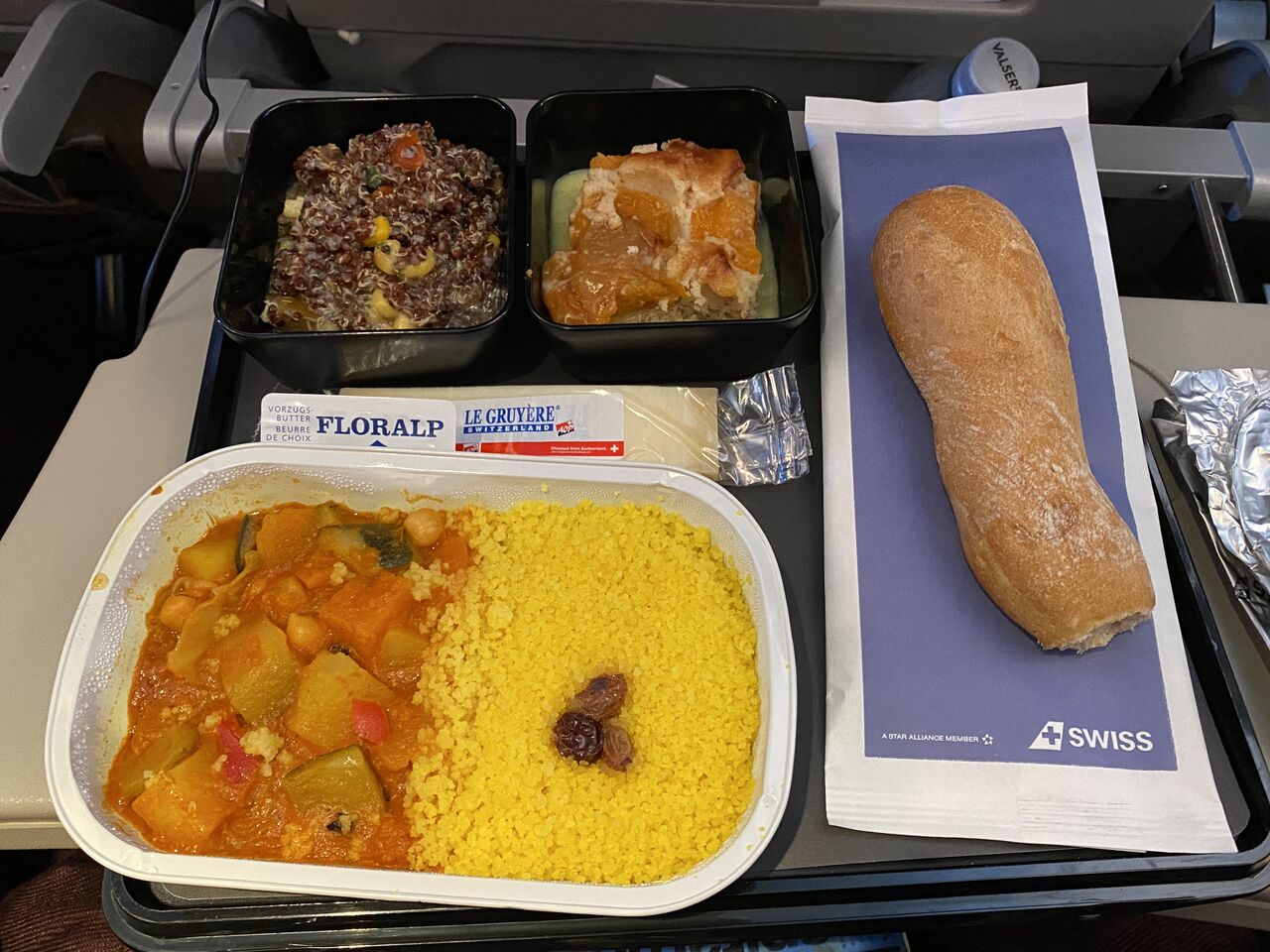 野菜のマサラにはクスクス。クスクスの量が案外多く最後は野菜のルーの部分が足りなくなりました。味はフツー。キヌアのサラダは美味しかったです。あとはパンとグリュイエールチーズとアプリコットケーキでした。