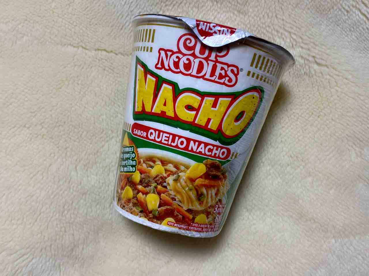 ブラジルのNISSINのカップ麺「CUP NOODLE NACHO SABOR QUEIJO NACHO」を。
