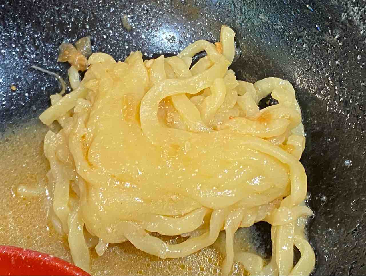 焼きバンメンは以前食べたあんかけ焼きそばをスープに浸したような味。三河屋製麺の極細麺を蒸してから焼いたような麺ですが、全体的に麺が粉々になってかなり短い状態になってます。台湾の麺線のようにレンゲですくって食べる麺のような食べ物になっているので、麺の長さがしっかり保たれていれば違った印象の商品になるのではと思いました。
