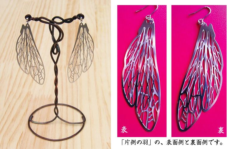 腐食させた虫の羽のピアス。