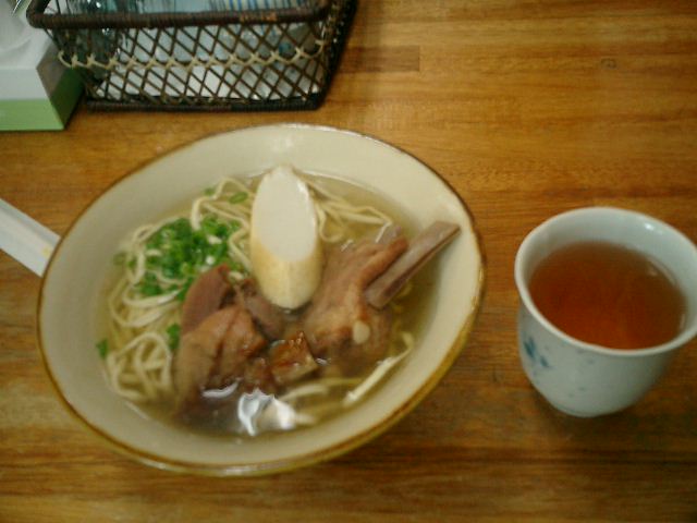 全体的にあっさりした沖縄そばにあっさりめのソーキがのっています。