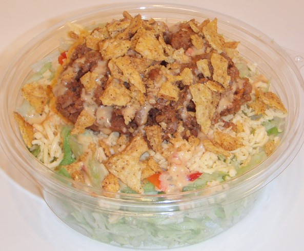 (写真は、ナチョチップたっぷりのメキシカンサラダです)