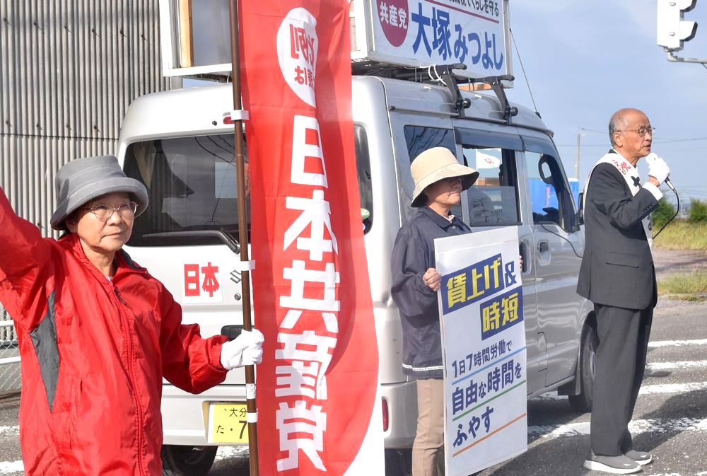日本共産党の大塚光義候補が45カ所で街頭演説