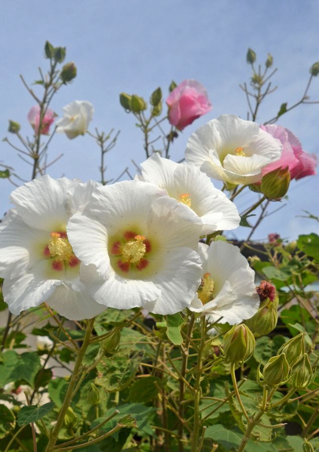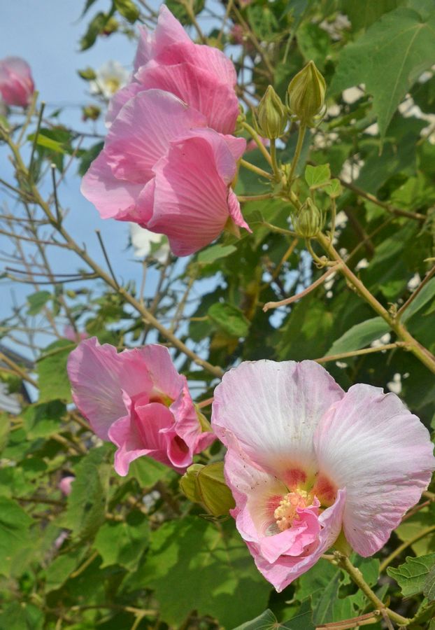 今日は担い手になってもらう働きかけで支援者宅訪問、庭先で酔芙蓉(スイフヨウ)の花に出会い感激、癒されますね。