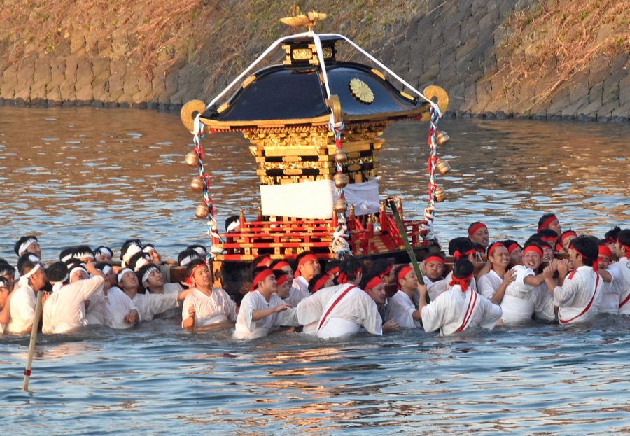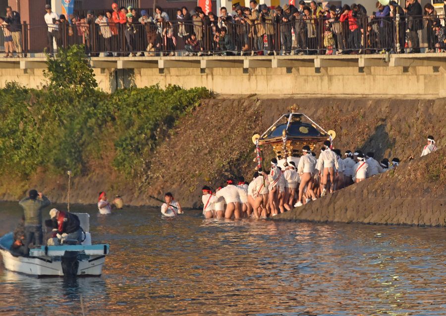 最終日の13日は午後5時20分頃から、川に入り神社に戻ります。
