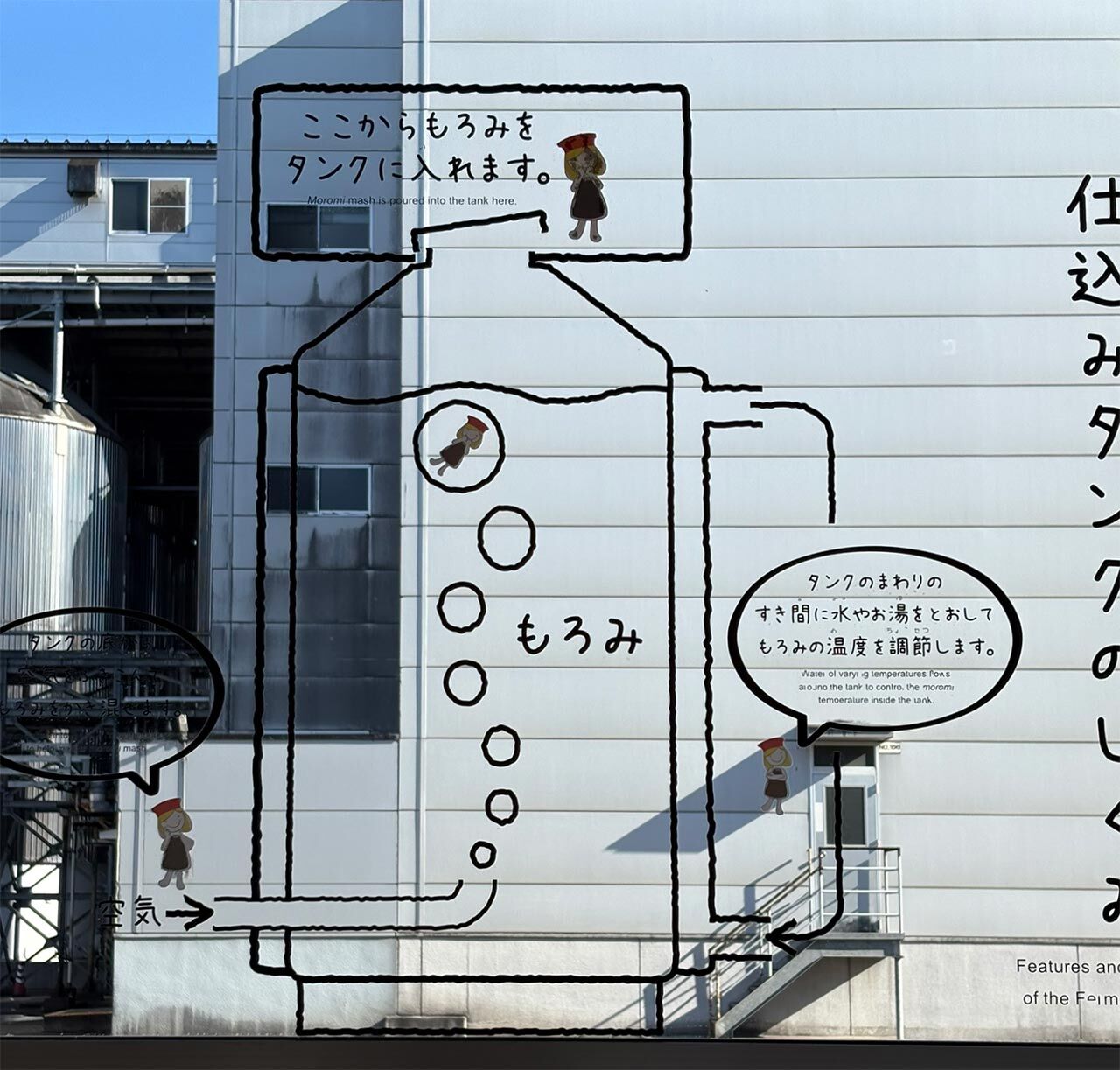キッコーマンのキャラクターである”なあに”ちゃんが櫂をもって、タンクの中をかき混ぜてるんですよ。醤油づくりにおいて「櫂」がいかにたいせつなものなのか、ちゃんと伝えてくれているんです。