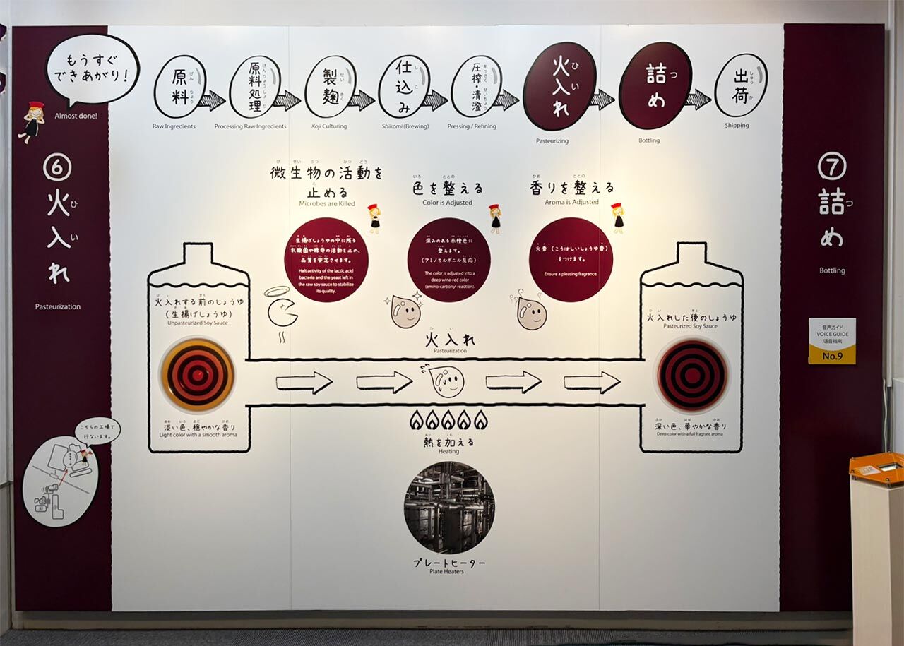 醤油づくりの3番目の肝である「火入れ」についてもしっかり説明するパネルがありました。