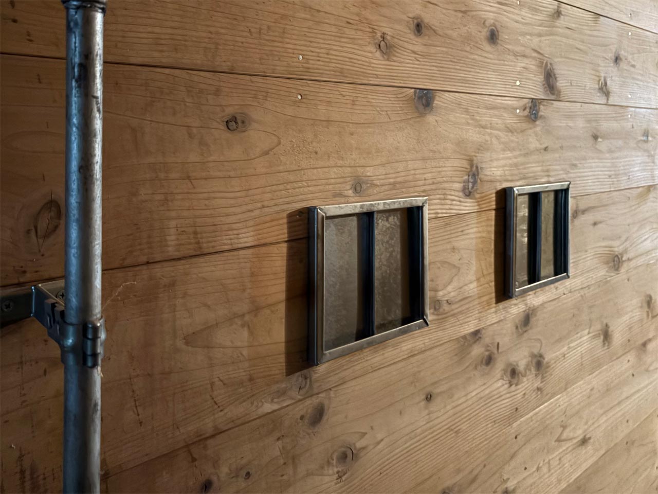 出入り口の扉のすぐ横にあるこれが換気口で、開閉できるようになっています。