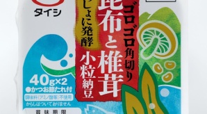 この掛け紙をデザインしたメーカーさんも、そう呼んで欲しいから「昆布と椎茸」と「小粒納豆」を同じ色の白文字で表現してるんだと思うのですが。。