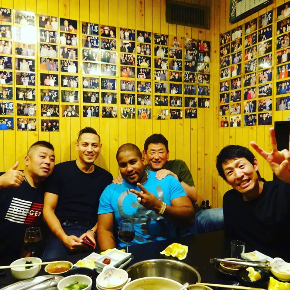 首位独走中のソフトバンクホークスの、立花義家バッティングコーチ、吉鶴憲次コーチ、本多雄一コーチ、アルフレド・デスパイネ選手、通訳の青木さん、お揃いでご来店くださいました。