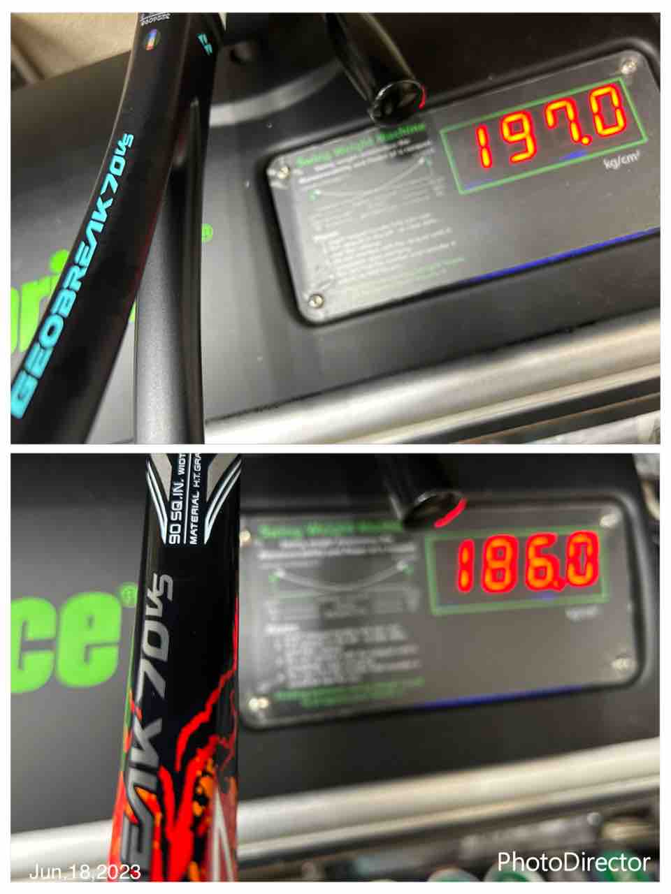 (YONEX製品は世界一誤差の少ないラケット作製技術があるので1本のみの比較でも信憑性はあるかと思います)
