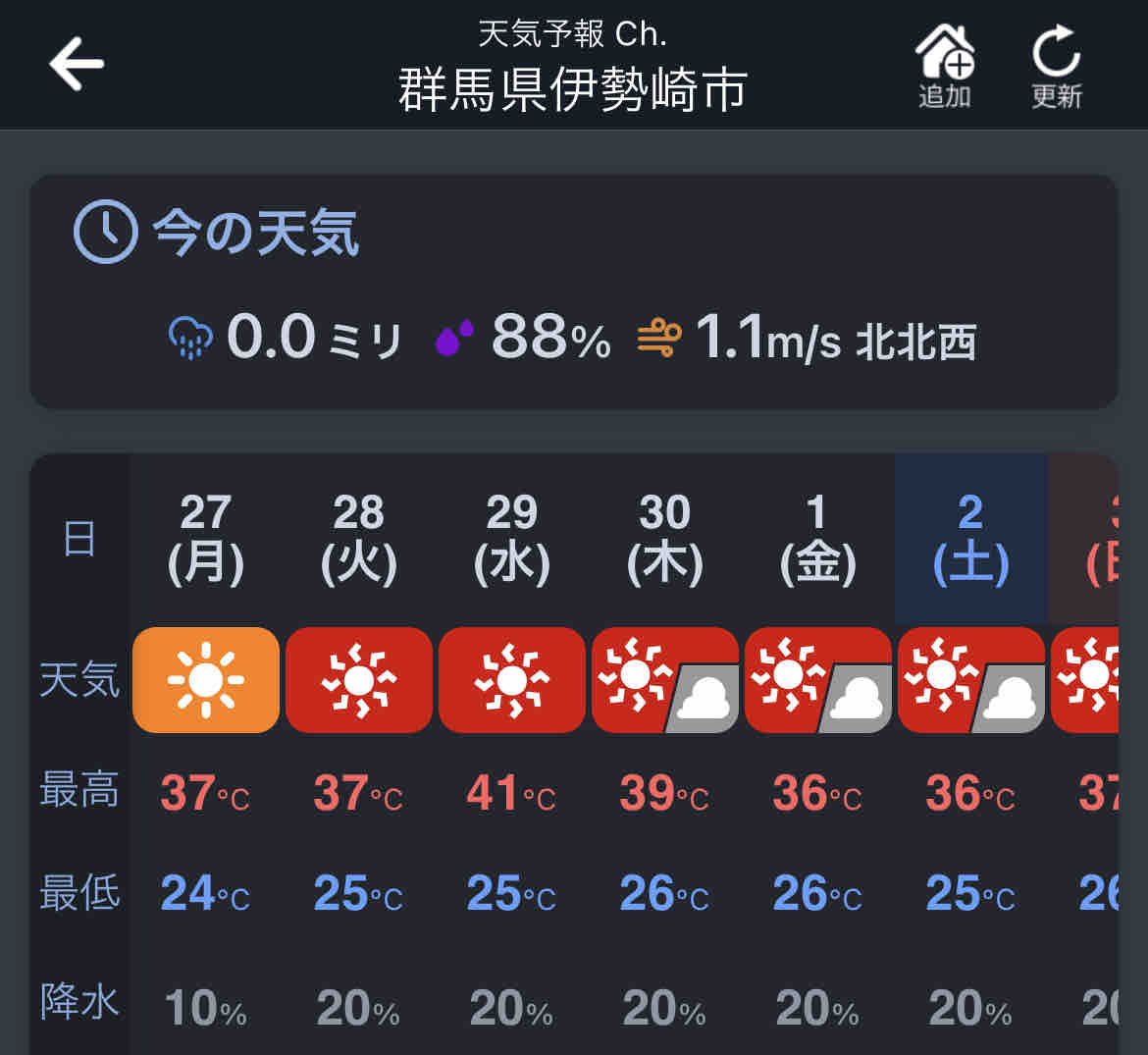 それにしても予報で40度超えを見るのは初めてなのでビビりました。
