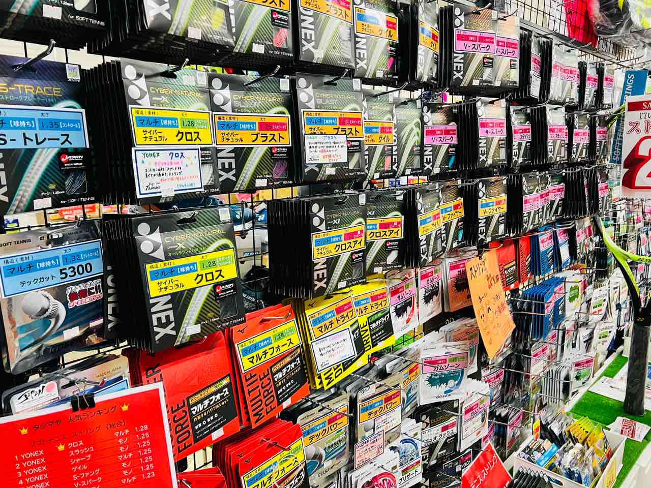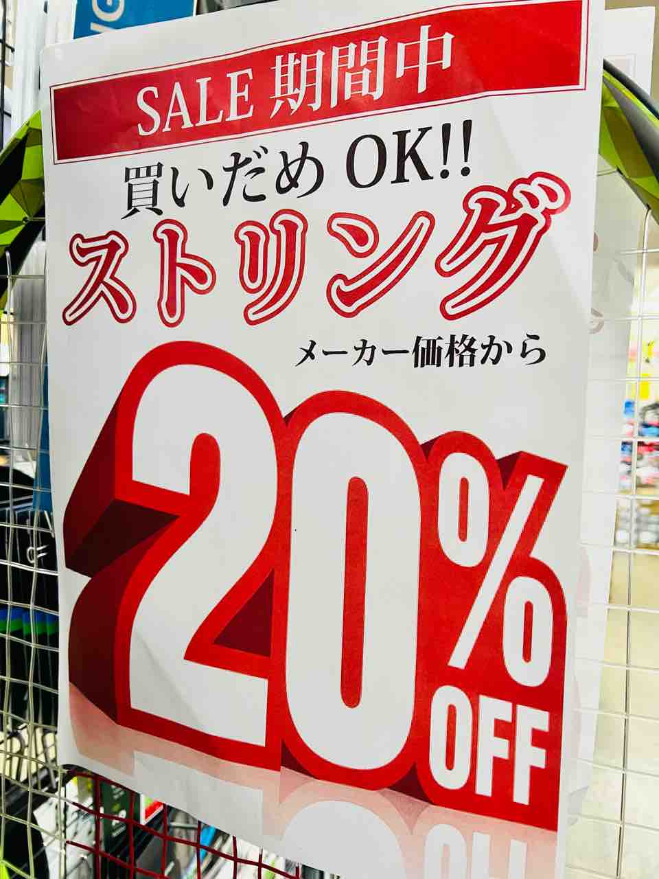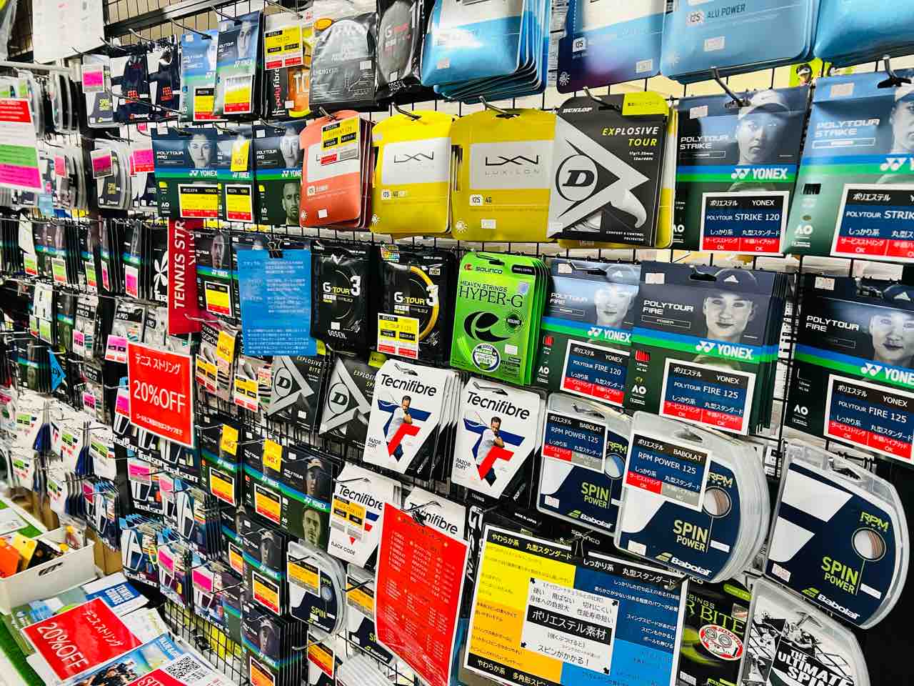 ソフトテニス、テニス、バドミントン、すべてのストリングがメーカー価格から20%OFF!
