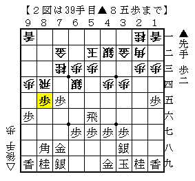 1図は第67回NHK杯戦、藤井聡太四段対稲葉陽八段戦(2017.12.10放送)の中盤の局面▲5五角に△6四歩と突いたところです。 ここで先手の稲葉八段が指した次の一手をお考えください。 正解は …… …… …… ▲8六歩(2図)でした。 2図で△同銀は▲6四角があります。