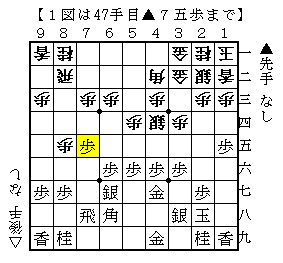 1図は第69回NHK杯戦1回戦、菅井竜也七段対永瀬拓矢叡王戦(2019.6.30放送)の中盤の局面です。 ここで後手の永瀬叡王が指した次の一手をお考えください。 正解は …… …… …… △7四歩(2図)でした。 穴熊を活かして、▲同歩なら△8六歩から戦いにする読みでしょうか。将棋ランキングにほんブログ村