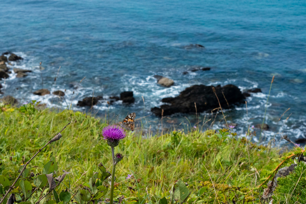 地図の③の場所で、妻が撮ったアザミと蝶です。これは奇麗だなと思いました。 (ニコンD7200)