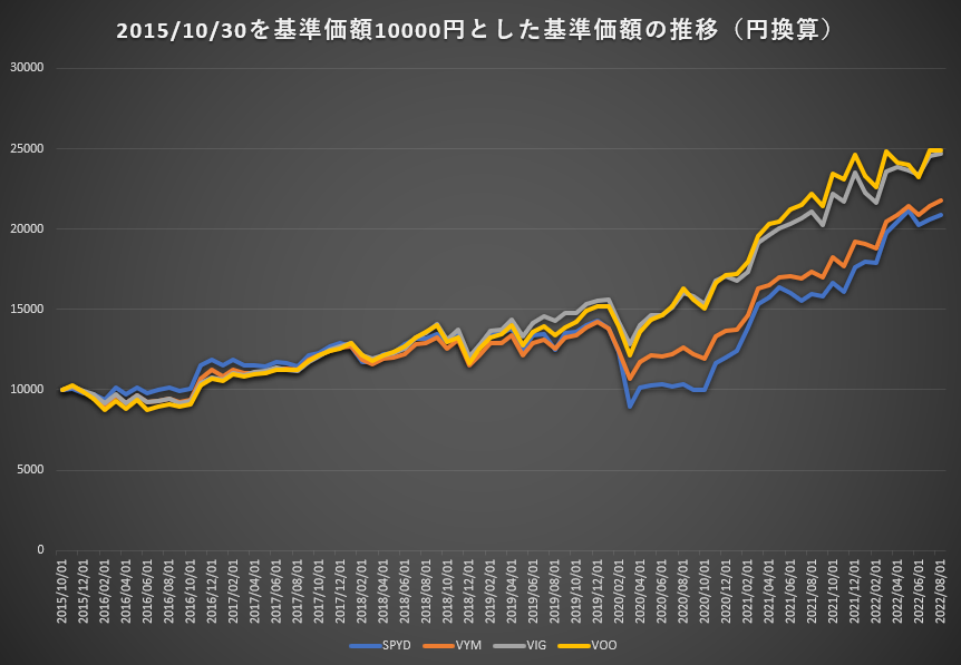 今回は高配当ETFと連続増配ETFとS&P500ETFを比較します。