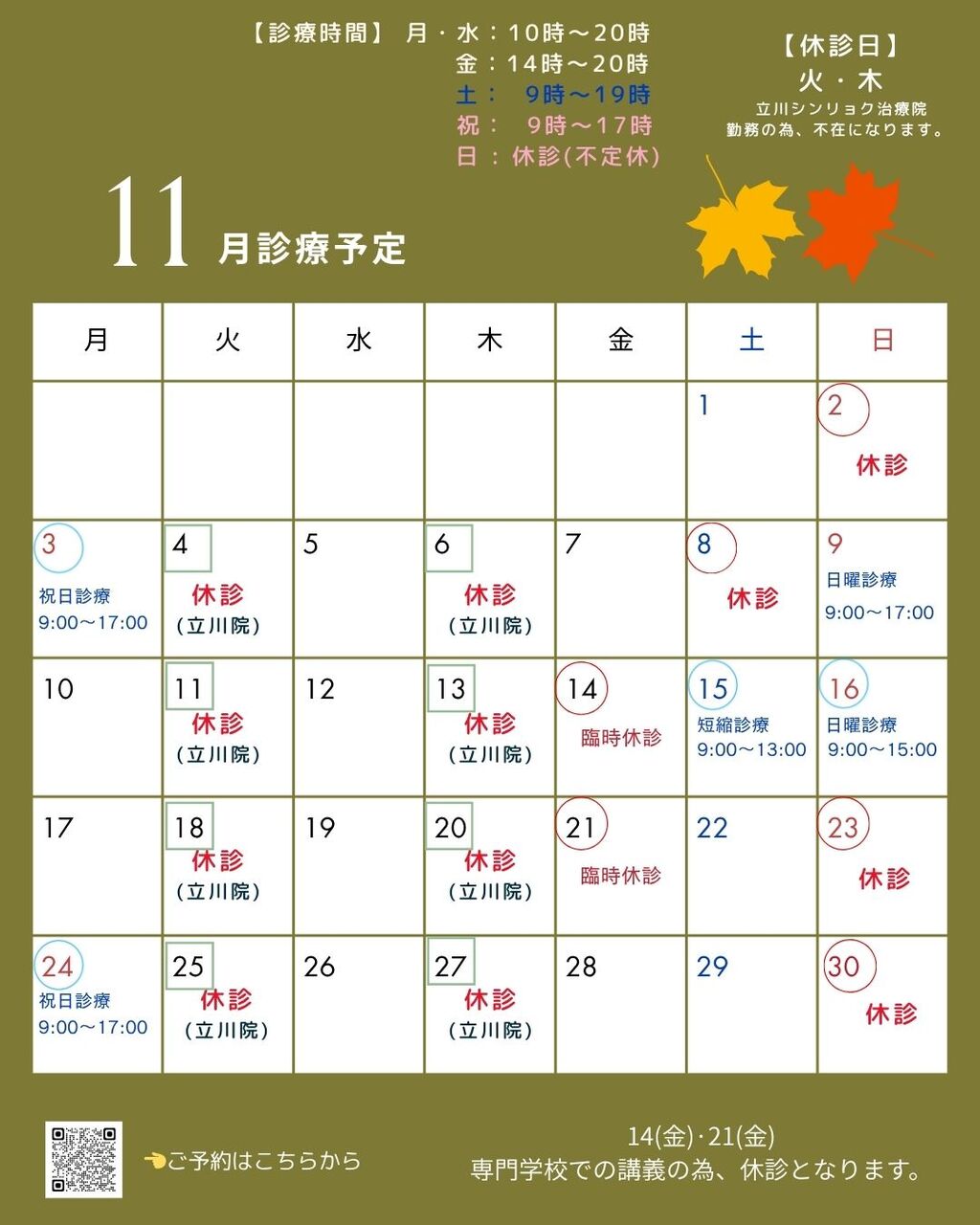 11月の診療予定