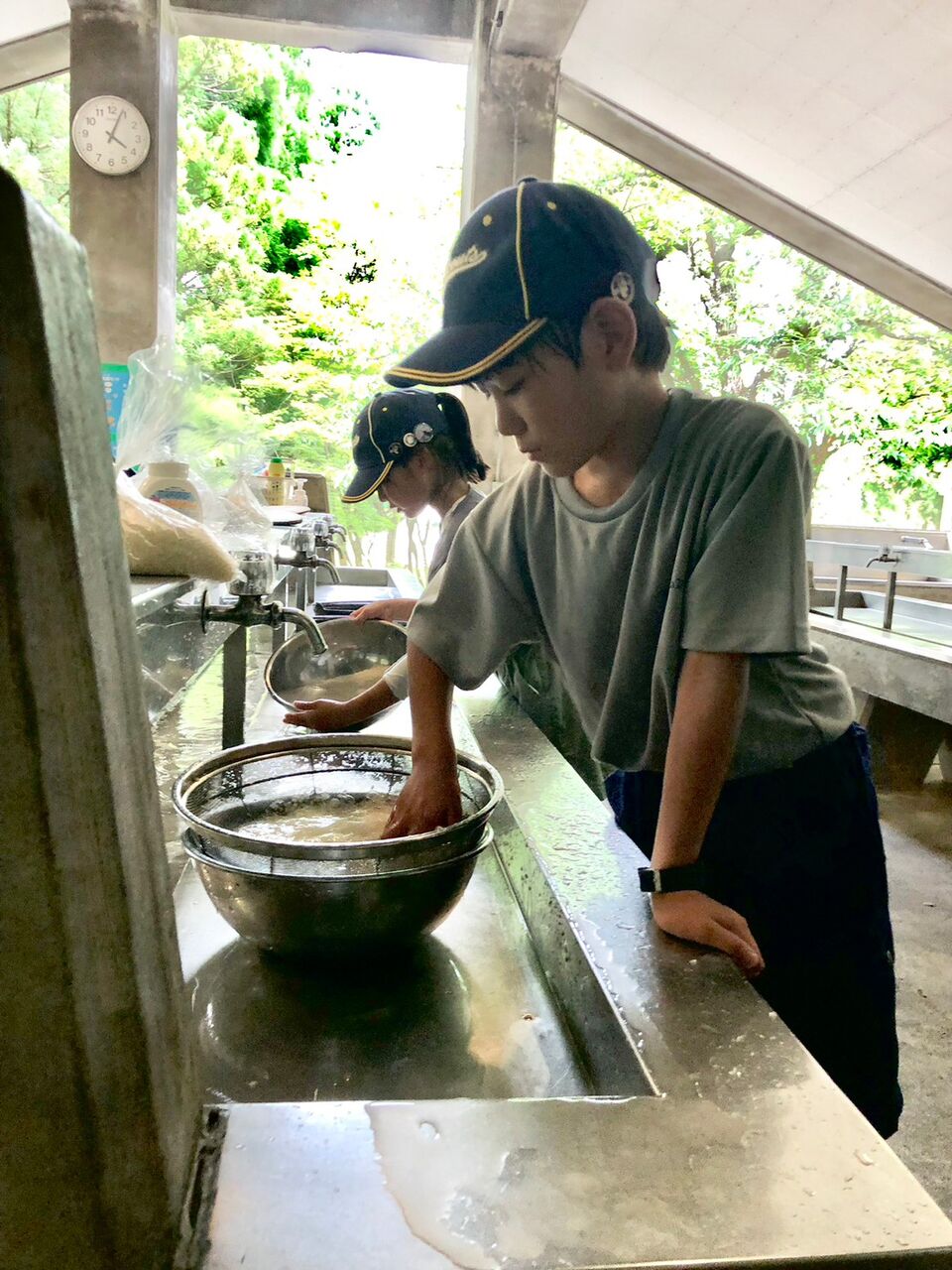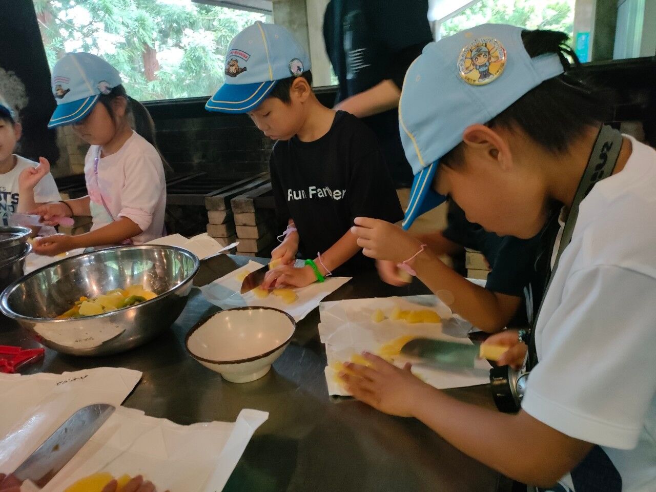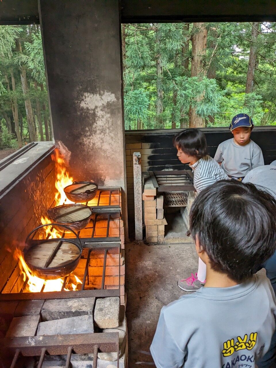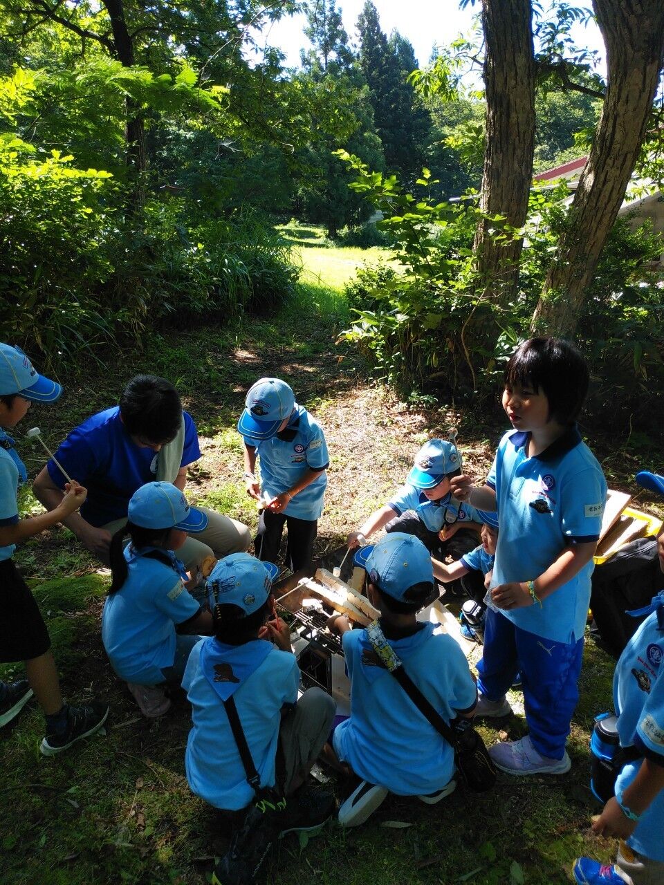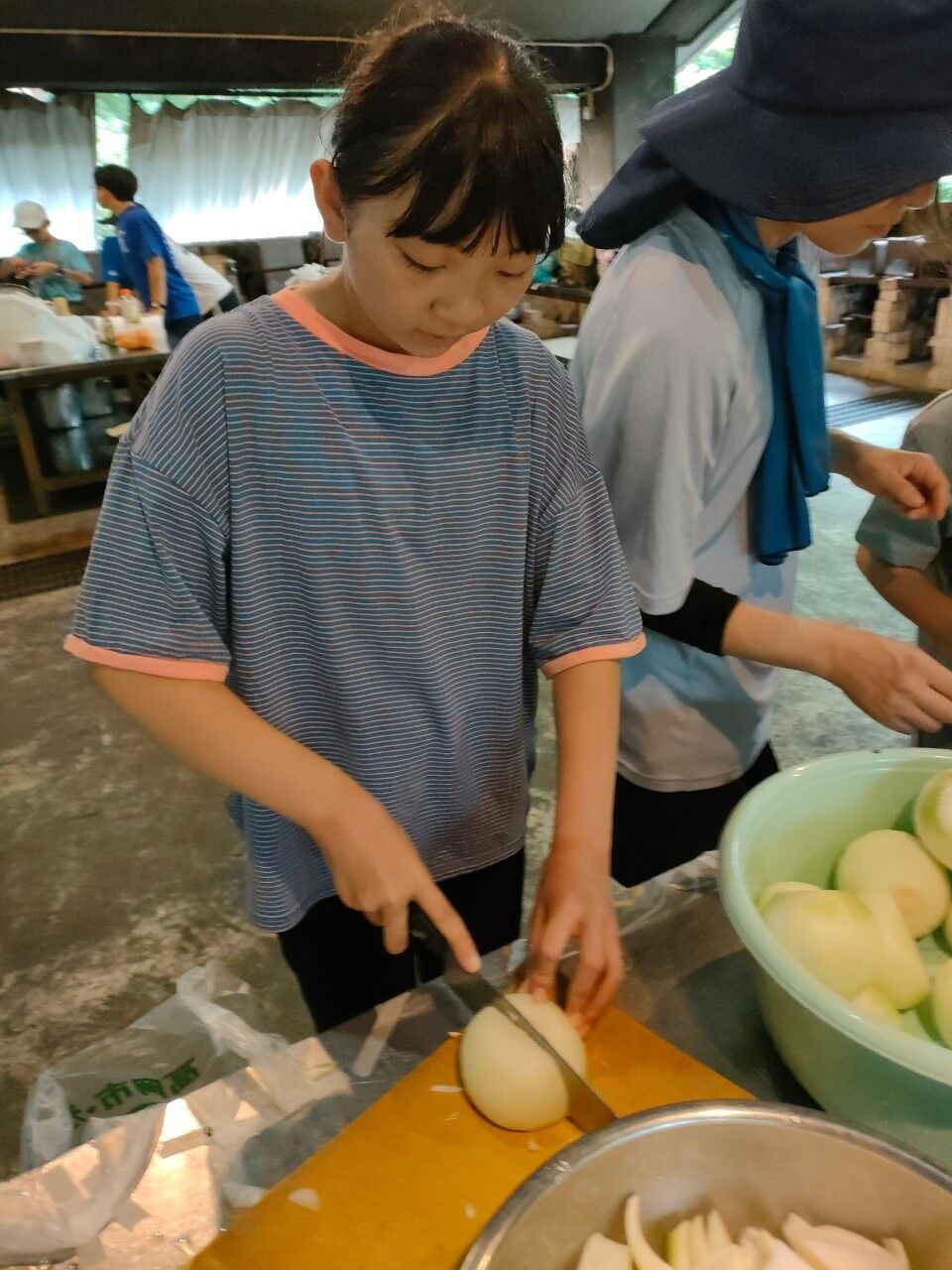 スプーンを作り終えると、いよいよ夕食のカレー作りに取り掛かりました!くまスカウトは薪で火をおこしてご飯を炊きました。米を研いで火にかけて、薪を継ぎ足したり鉄釜の様子を確認したりと一生懸命に取り組んでいました。しかスカウトとうさぎスカウトはカレー作り。じゃがいも、人参、玉ねぎの皮をむいて、食べやすい大きさにカットしたりと、皆で協力して頑張っていました!カレーが完成したら以外に量が多かったんですが、皆で協力してなんとか食べきる事が出来ました!とても美味しかったです。