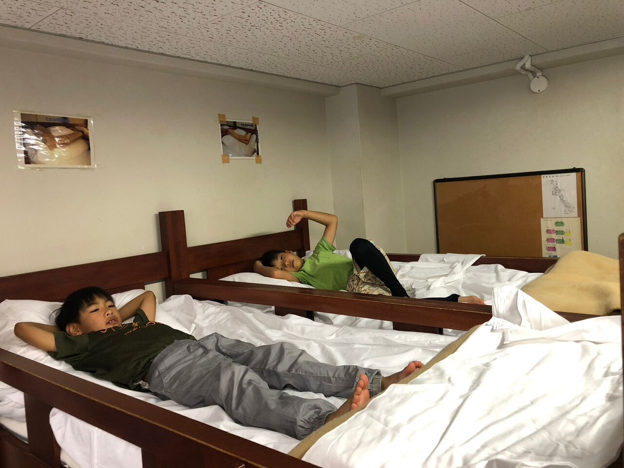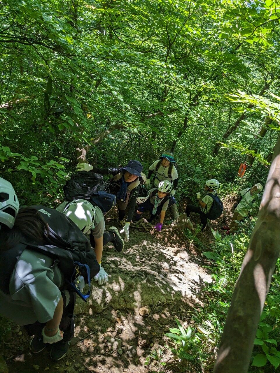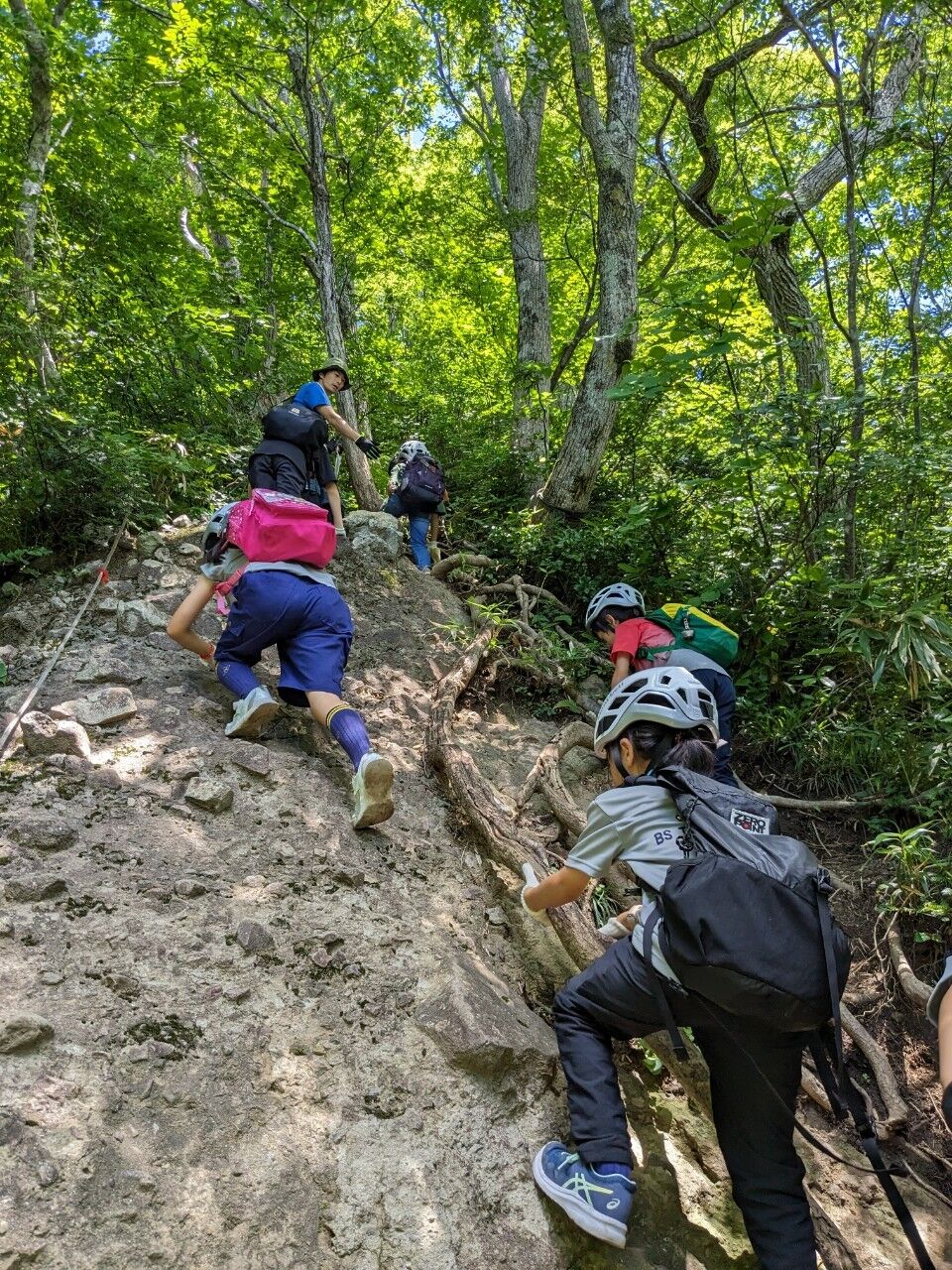 朝食を済ませて、いよいよ来拝山に登山です!この日は全国的にとても暑い日だったんですが、皆頂上目指して一生懸命頑張りました。途中結構急な岩場やハシゴなど険しい道のりでしたが、誰一人脱落することなく頂上まで登りきりました!本当に大変だったと思いますがよく頑張ったと思います。本当にお疲れ様でした!