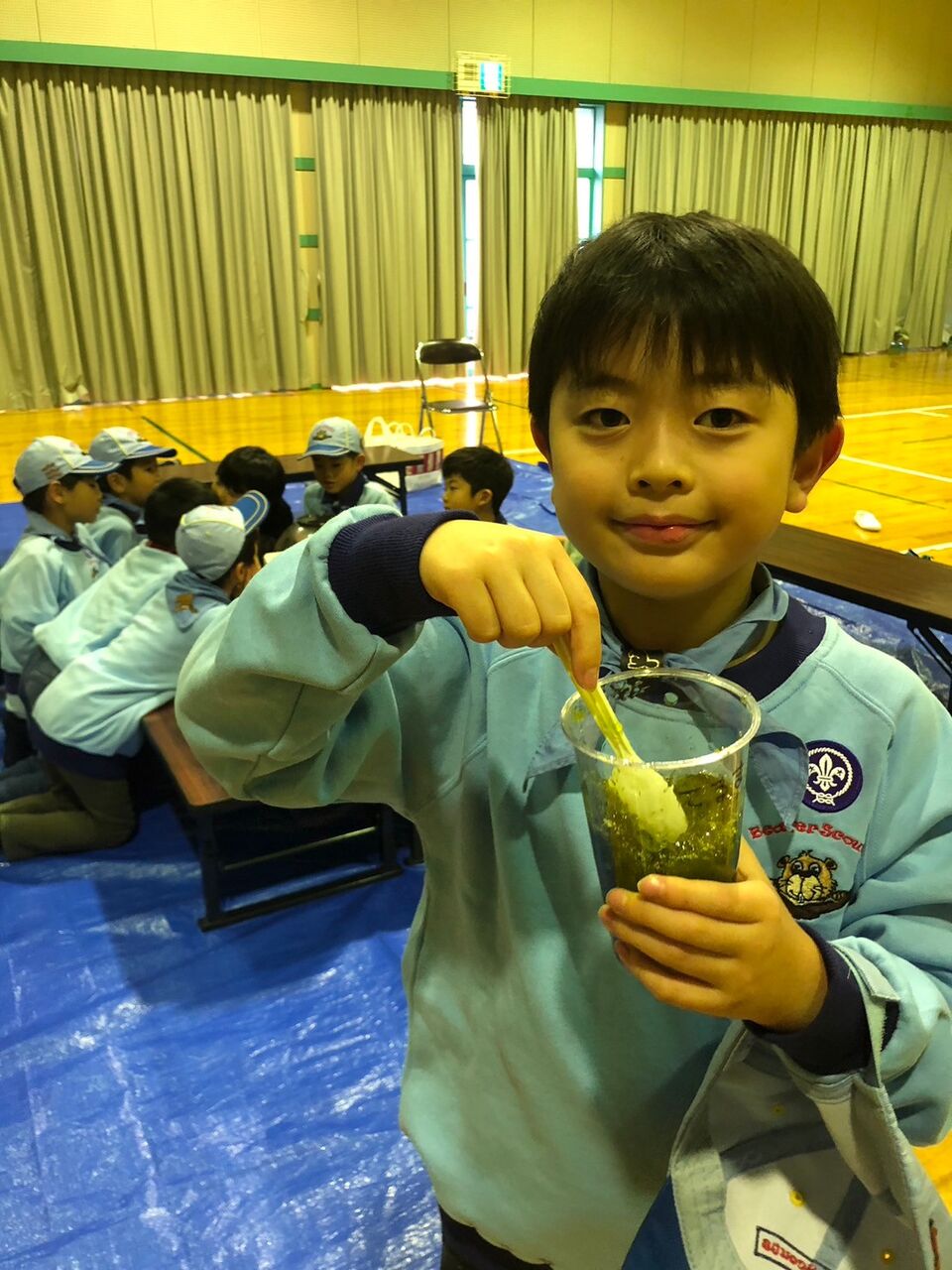3番目のスタンツは僕たちボーイスカウト隊のダンスで、新しい学校のリーダーズさんの「オトナブルー」を踊りました。練習時間が短くとても難しかったです。