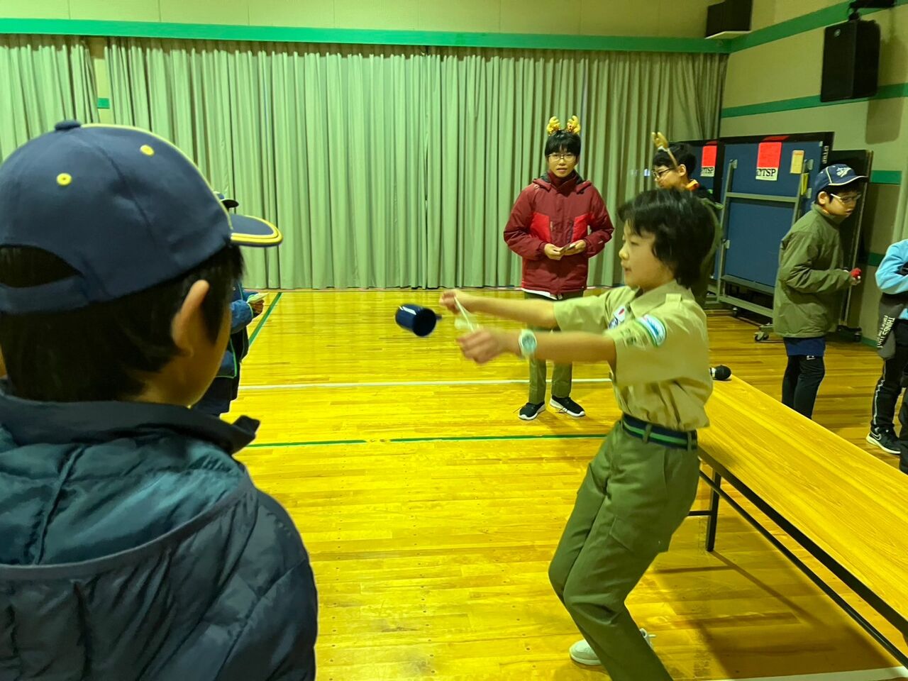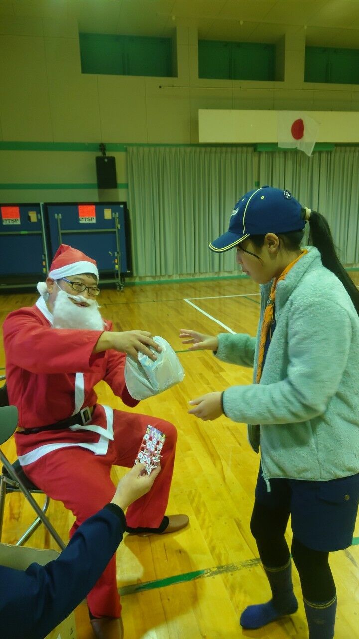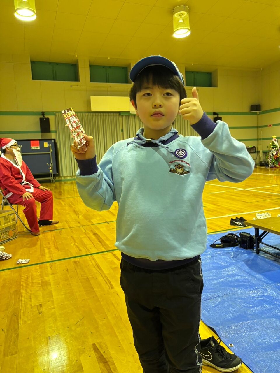 次に、ビンゴゲーム大会をしました。ビンゴはカブ隊やビーバー隊にも人気でした。また、サンタクロースも来てくれて、ビンゴになるとサンタさんからプレゼントを貰えて嬉しかったです。