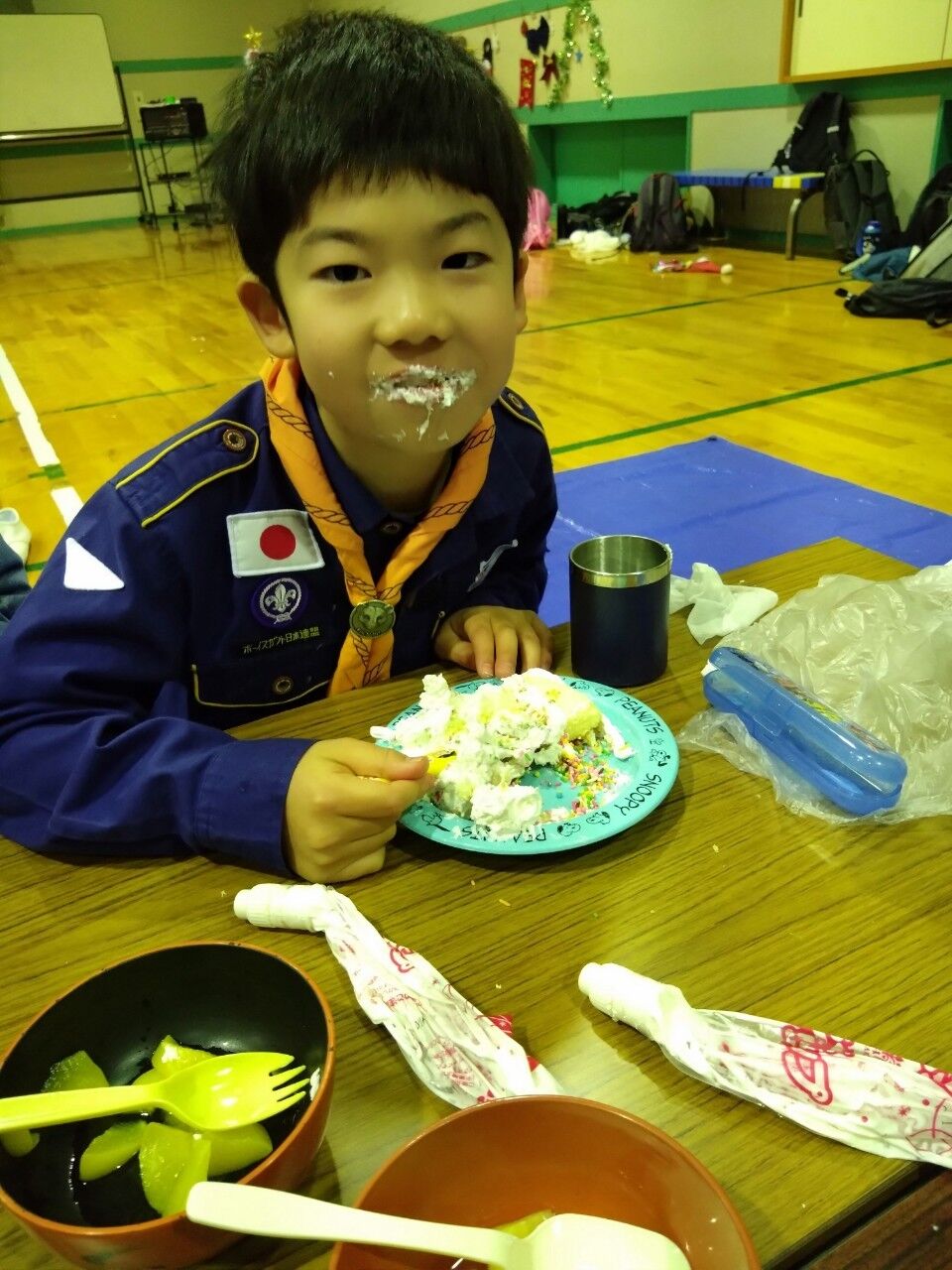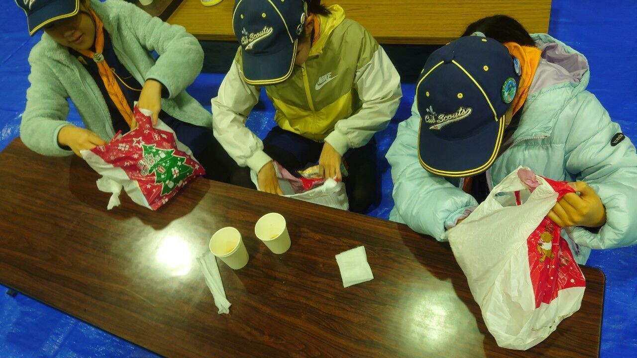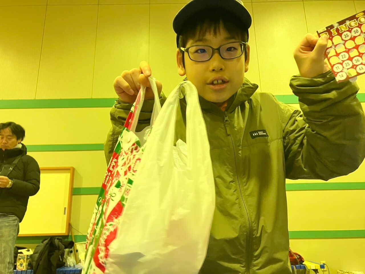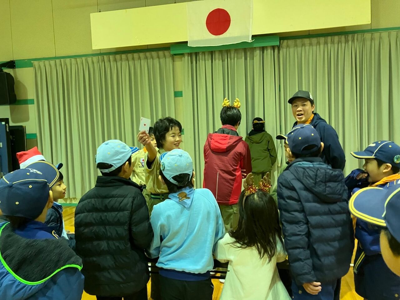 次に、ビンゴゲーム大会をしました。ビンゴはカブ隊やビーバー隊にも人気でした。また、サンタクロースも来てくれて、ビンゴになるとサンタさんからプレゼントを貰えて嬉しかったです。