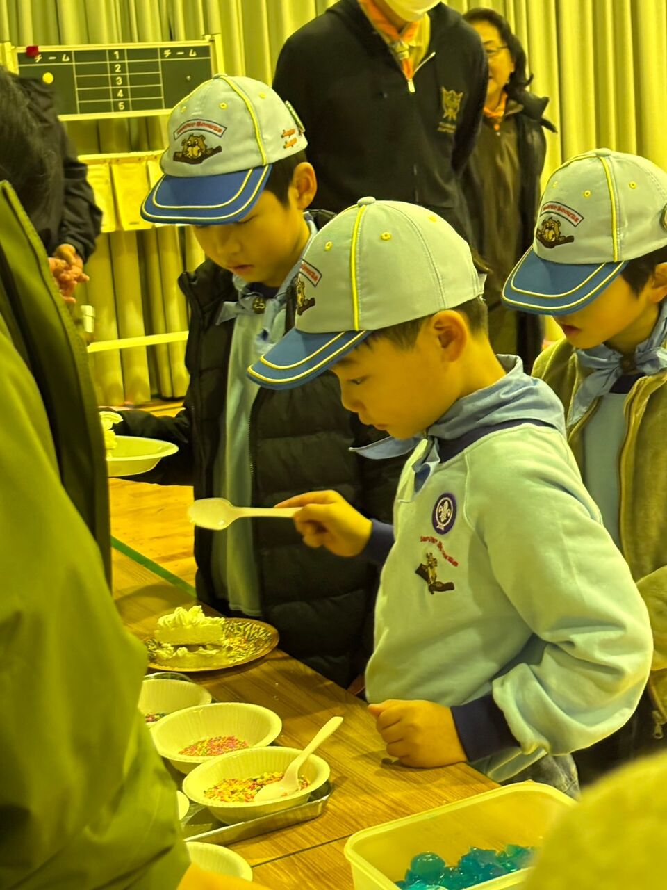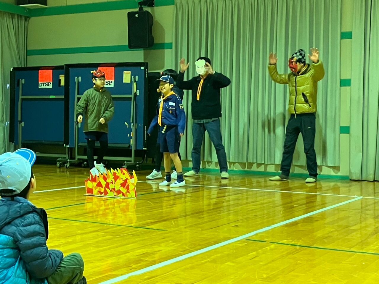 まず初めに、各隊のスタンツを見ました。ボーイ隊はマジックを披露しました。事前にも練習があり、家でも練習したので本番では成功しました。みんなも「おー!」と言ったりして興味津々でした。他の仲間達もほとんどが成功しました。どの隊のスタンツも素晴らしかったです。