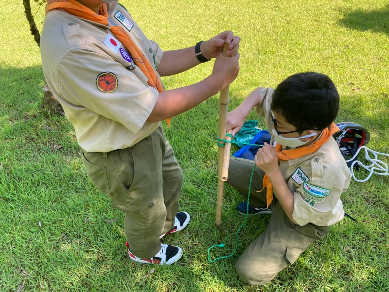 途中ツツジ公園でロープワークをしました。