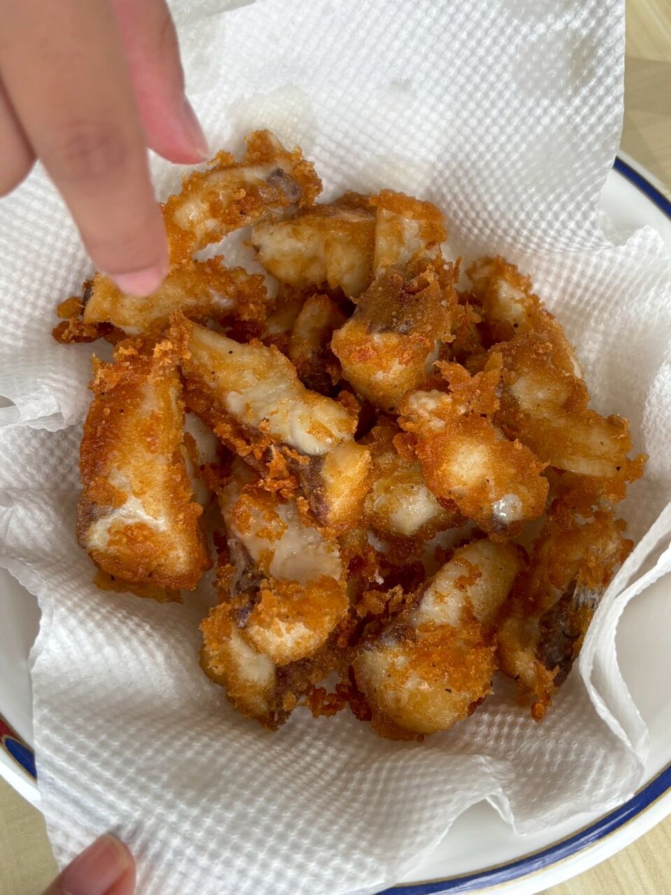 釣りの後はさばいて、からあげにします。上手に包丁で切り分けてくれました。さてどんな味でしょうか‥?みんなで協力して、美味しく魚たちが揚がりました。カブが作ってくれた魚肉だんごも!