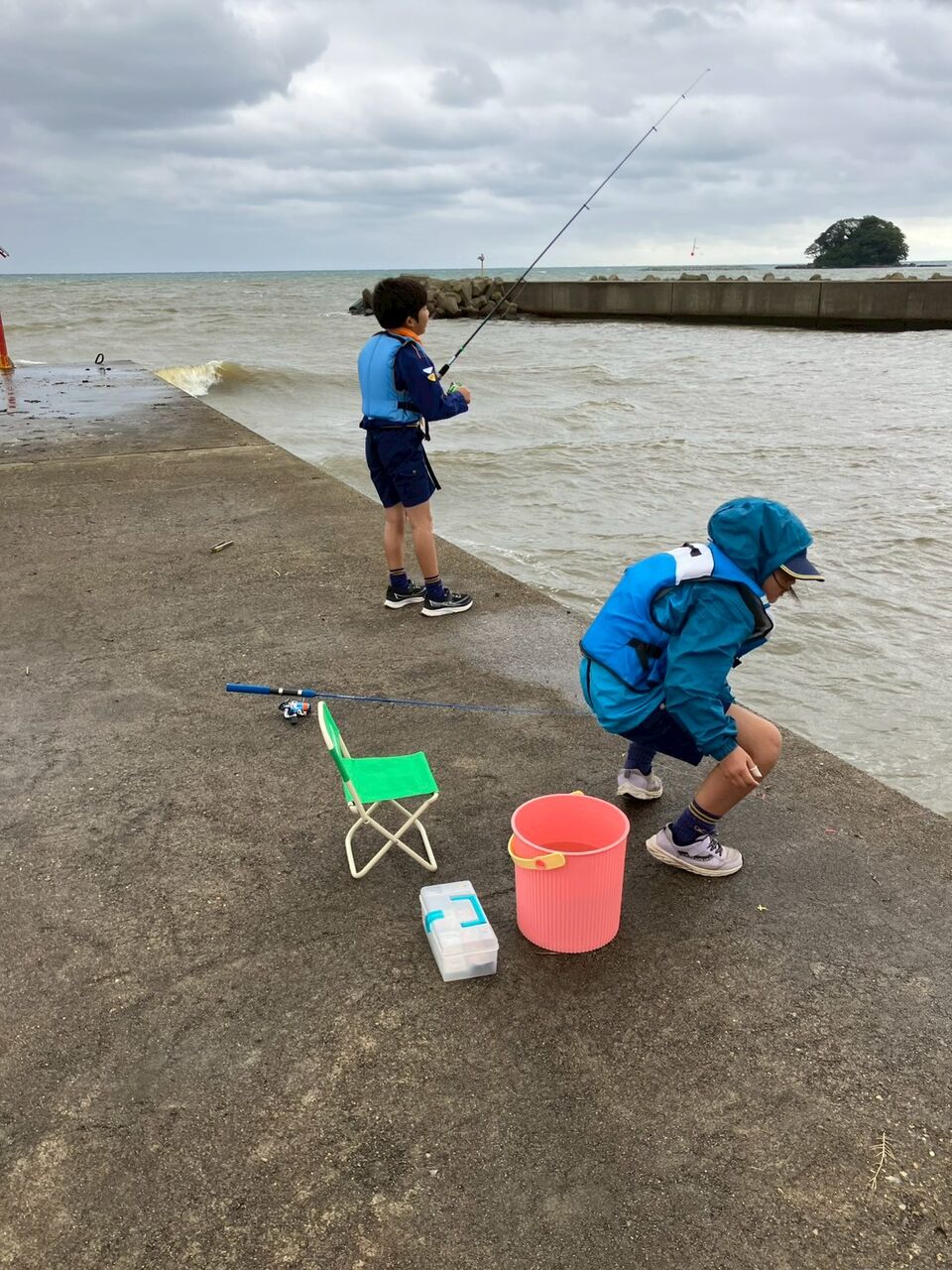 10/19(日)比美乃江大橋下(氷見番屋街近く)で釣りをしました。強風や雨で海水が濁っている悪条件の中、隊員達は悪戦苦闘しながら釣りに挑み、寒い中、なかなか釣れない時間が過ぎました。