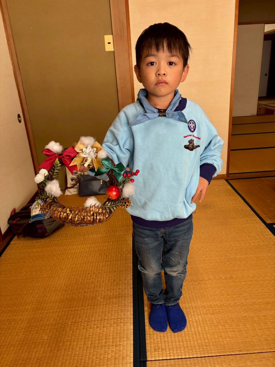 11/15(土)はクリスマスリースを西二塚公民館にて作りました。今回は畑先生をお呼びして、リボンづくりと楽しいリズム体操を合わせて教えてもらいました。