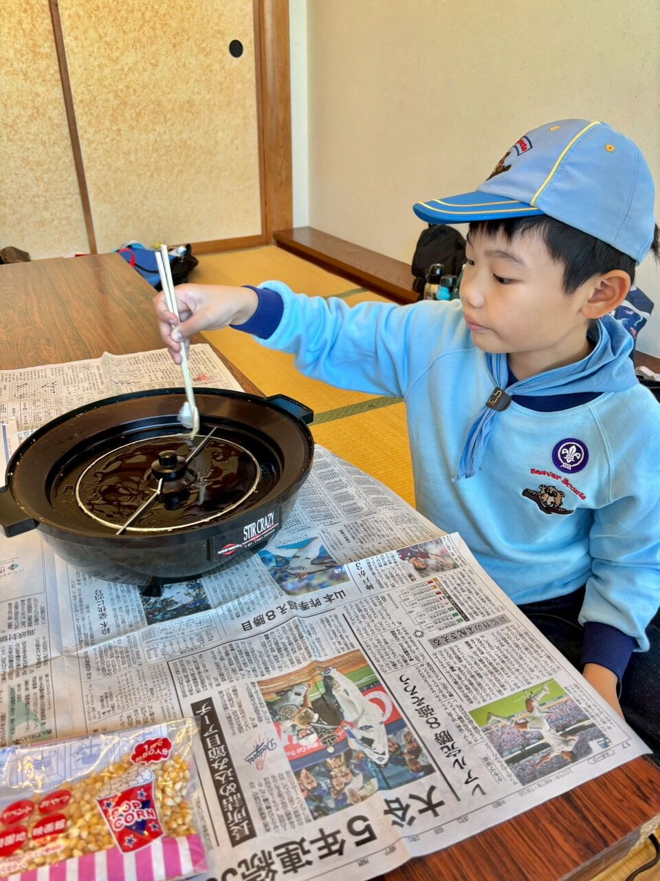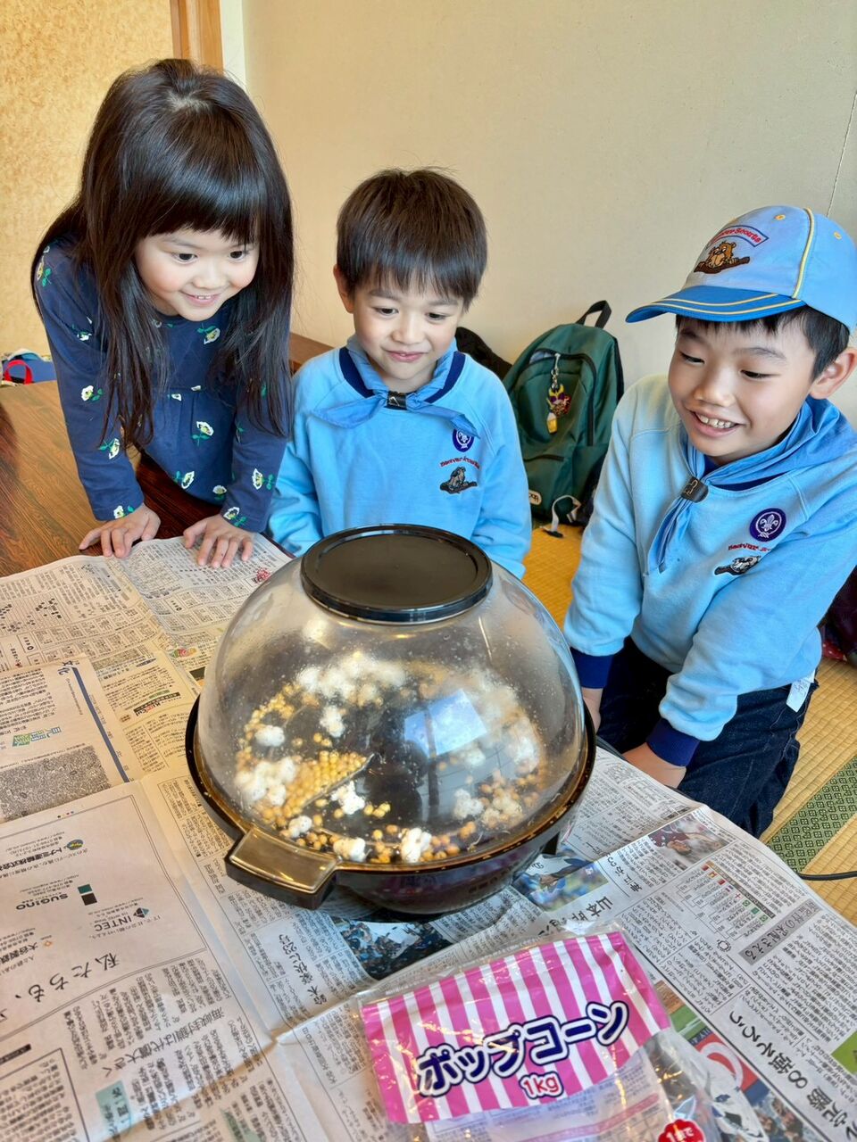 おやつにはポップコーンを楽しみました♪みんな弾けるタイミングをワクワクしながら待ちました!おかわりー!のリクエストで2回やりました。