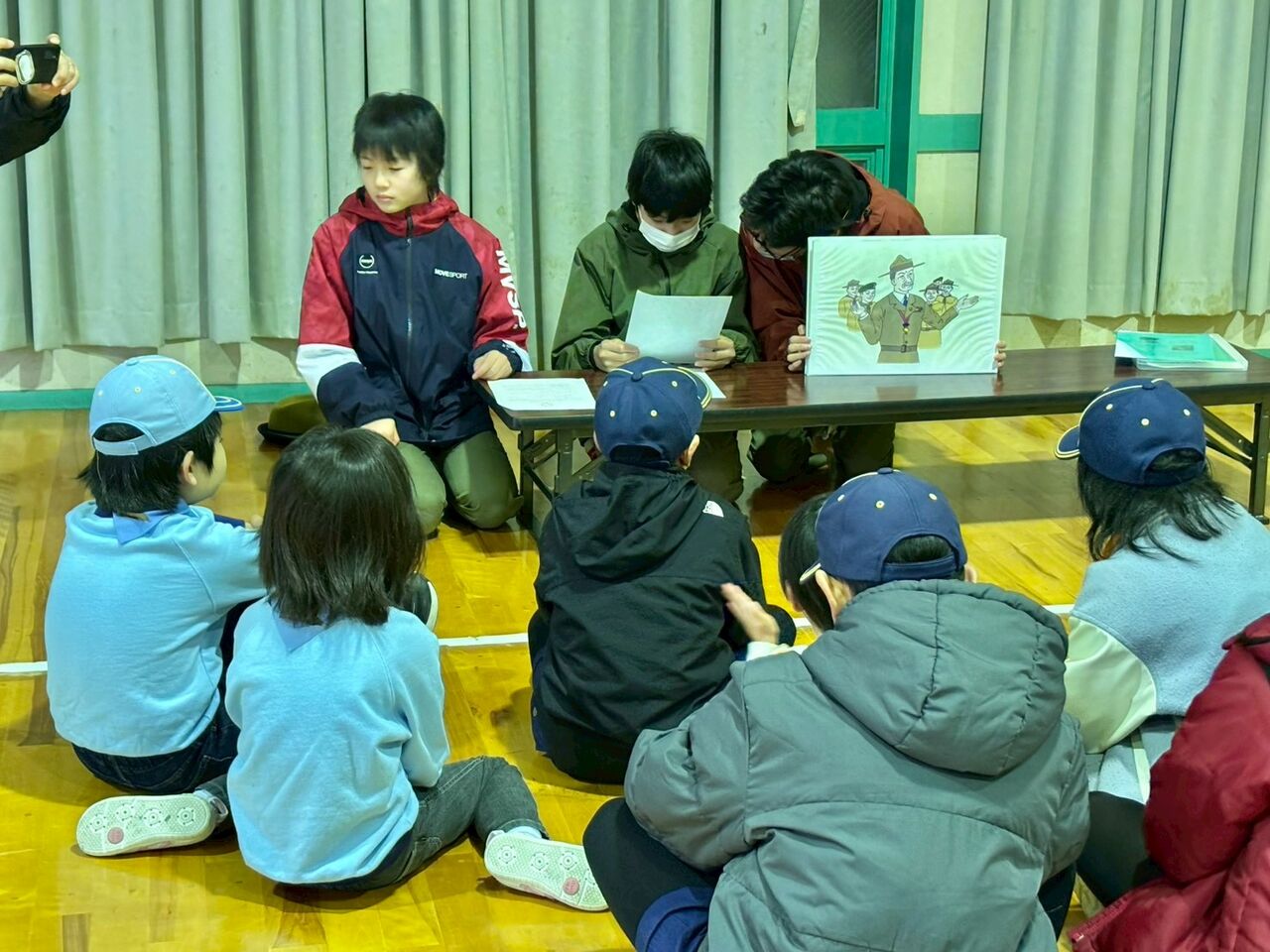 次に B.Pを紹介した紙芝居で 奉仕の精神の大切さを教えてもらいました。みんな集中してお話を聞きます。