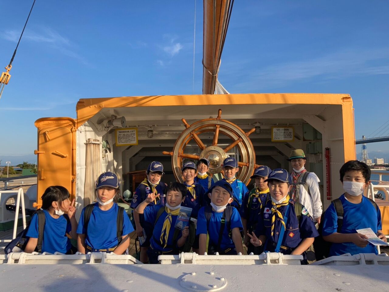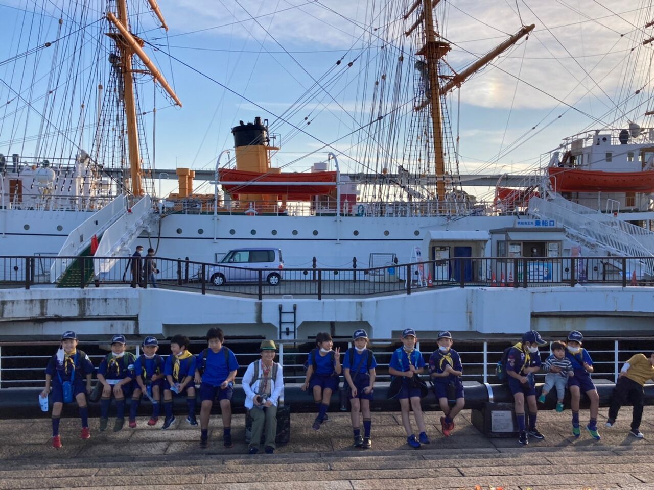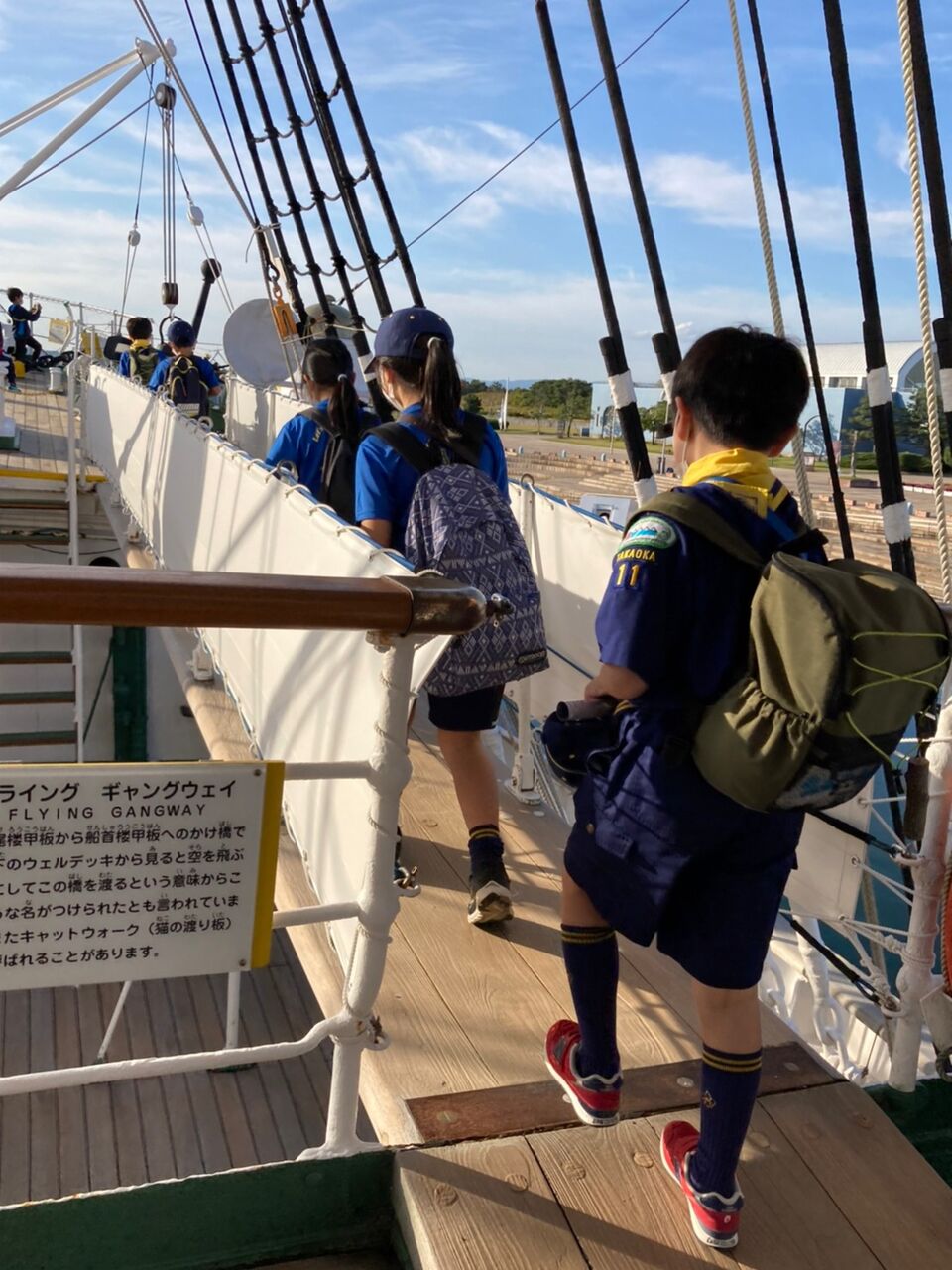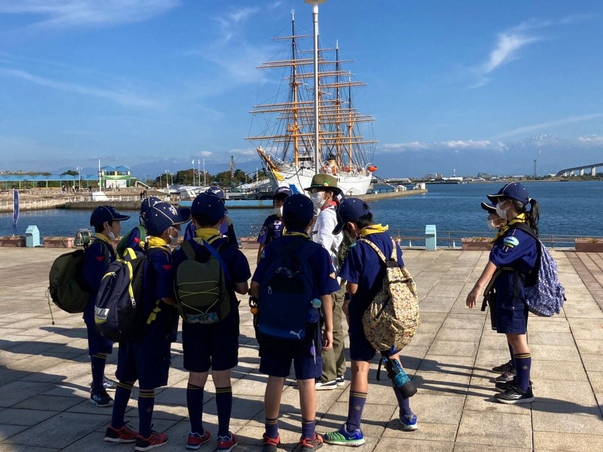 秋のさわやかな青空のもと、カブ隊は海王丸パークにて