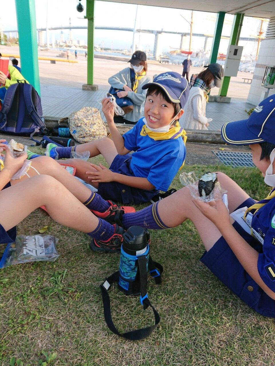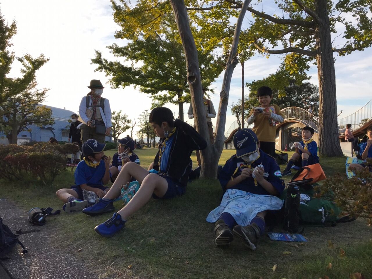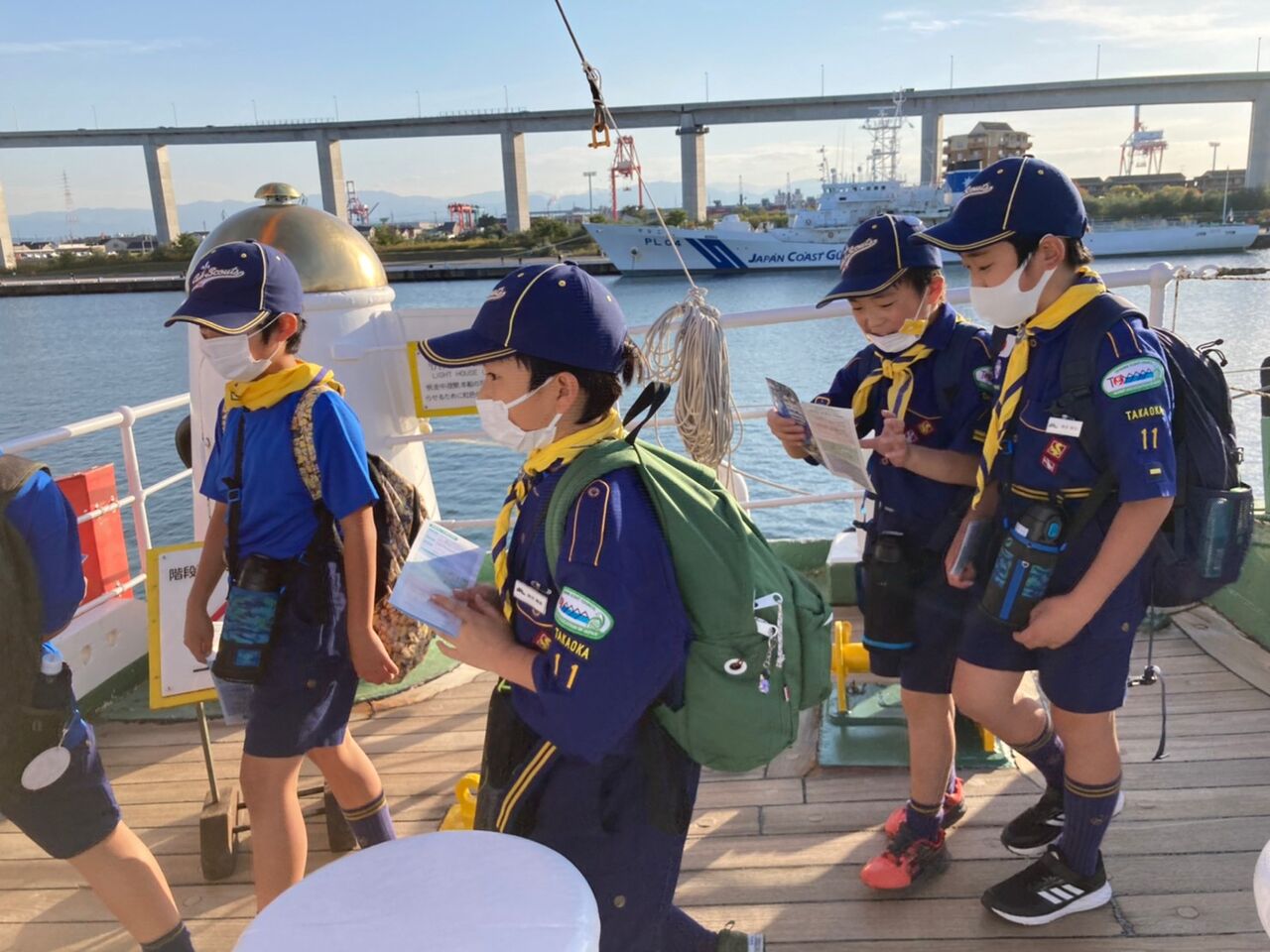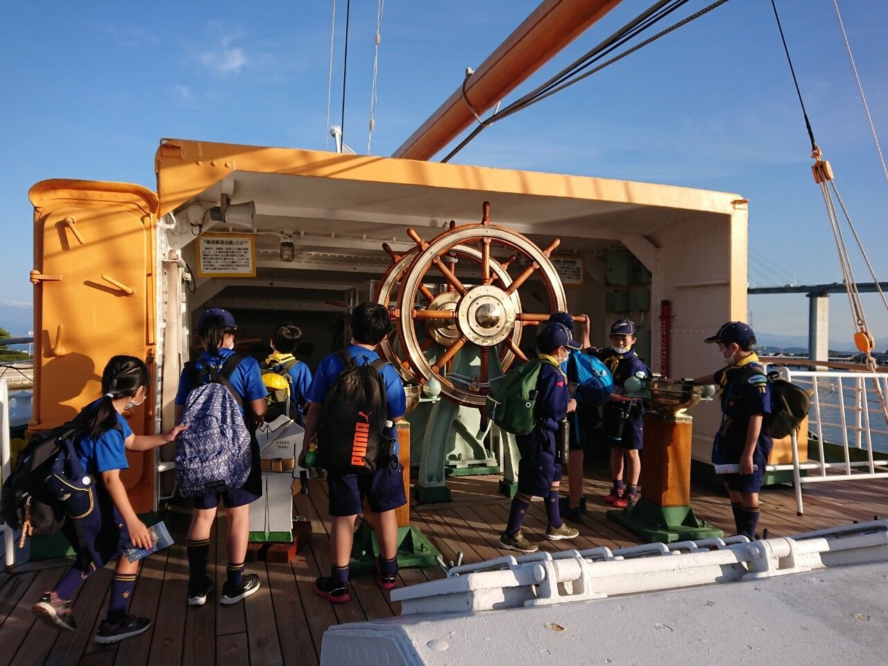 秋のさわやかな青空のもと、カブ隊は海王丸パークにて
