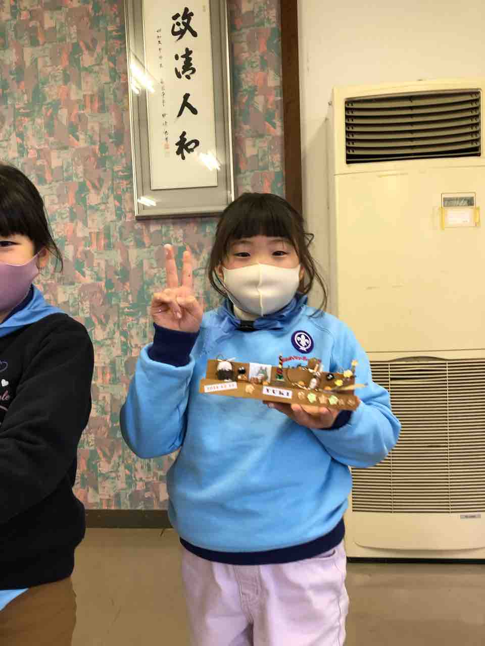 2021年12月30日 12月第2回ビーバー隊集会「クリスマスdeトトロ」 カテゴリ:ビーバースカウト隊 12月19日(日曜日)、福田公民館で「クリスマスdeトトロ」の隊集会を行いました。元気に「さんぽ」を歌いました♪どんぐりトトロを作りました。みんな熱心に作ってステキなどんぐりトトロが完成しました!ご褒美に特製のチーズケーキ😋良いクリスマスを コメント コメントフォーム 名前 コメント 記事の評価 リセット リセット 顔 星 情報を記憶 コメントを投稿する