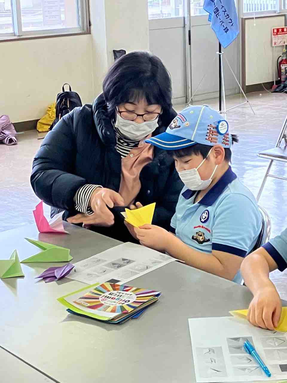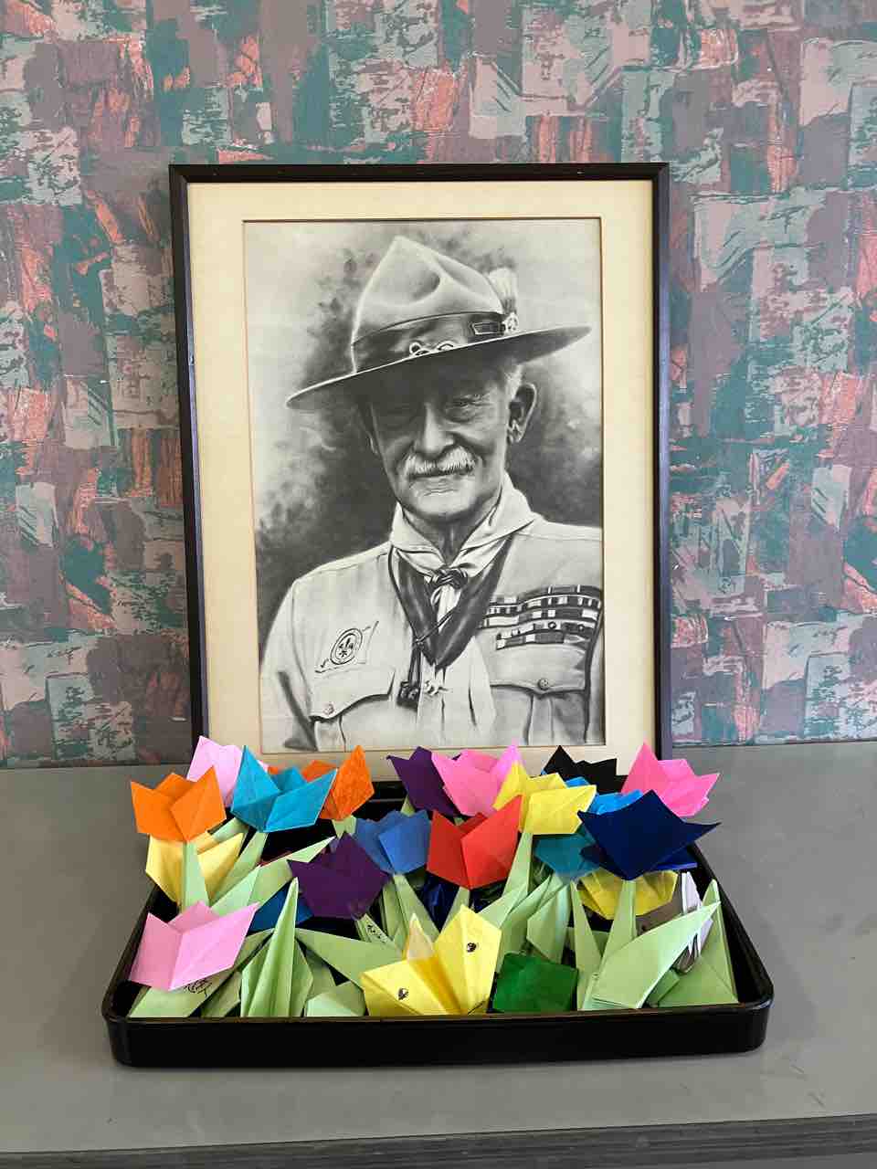 アニメのベーデン・パウエルさんの物語を観た後、折り紙でチューリップ🌷の花を作って、パウエルさんに贈りました。
