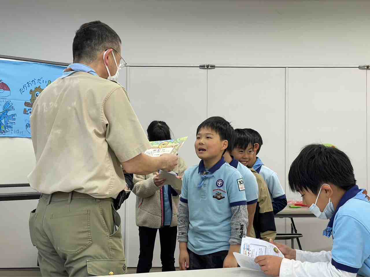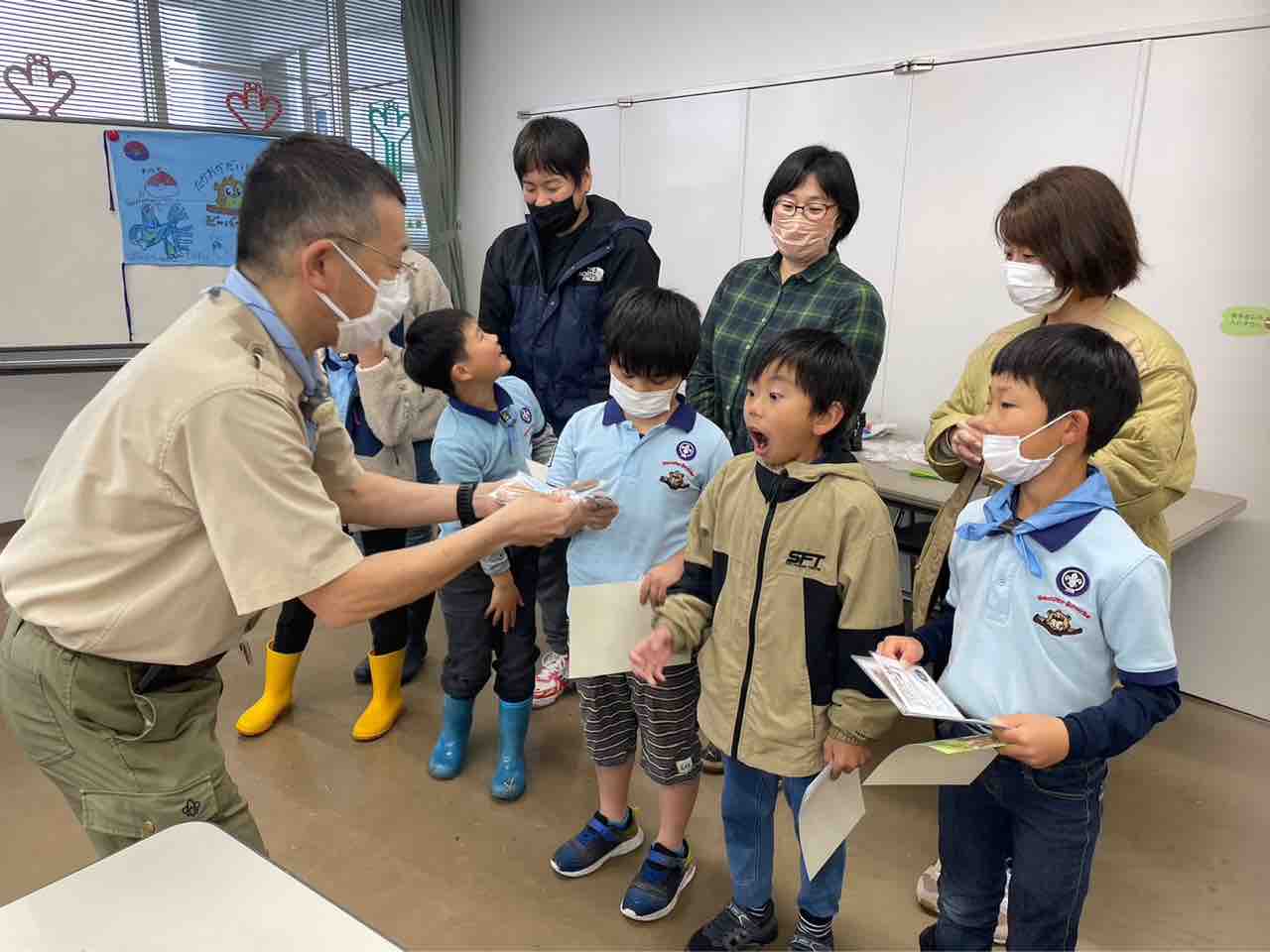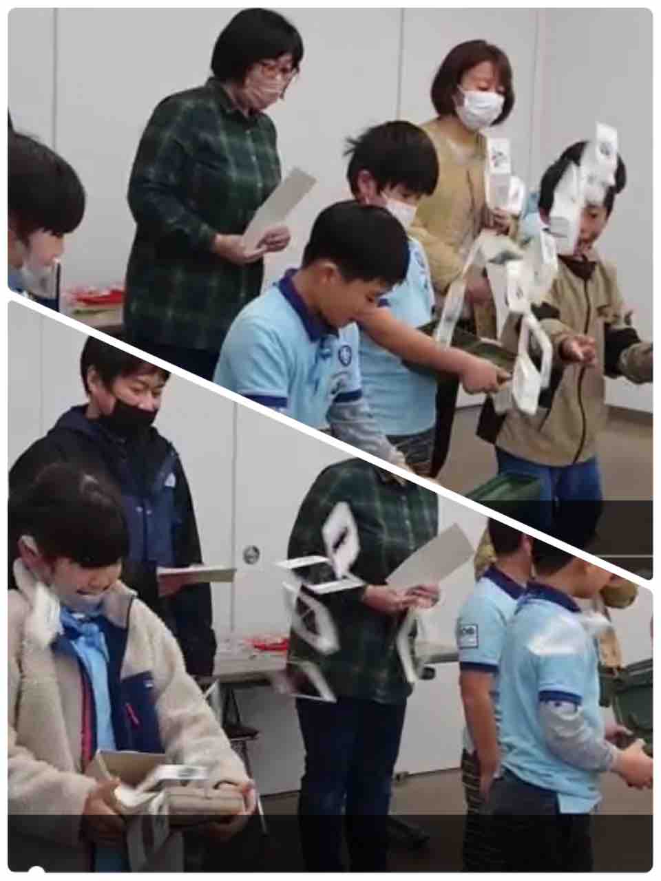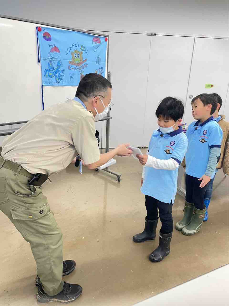 2023年03月28日 3月第2回ビーバー隊集会「おめでとう‼️ビーバー🦫」 カテゴリ:ビーバースカウト隊 3月26日、令和4年度最後のビーバー隊集会はおとぎの森公園で、連凧あげでした。今年度は晴れの隊集会が多かったのですがこの日はずっと雨の予報。フラワールームで連凧を作って繋げてから、公園で一人一人走ってあげました🪁いつも元気にみんなで大きな輪をつくろう🎶はるちゃんは3月生まれ‼️ハッピーバースデー🎂連凧作り雨の中、ビーバーは元気に走って連凧をあげました🪁全員が連凧をあげた後は一人一人の凧に分解しました。フラワールームに戻って本日のオヤツタイム‼️今日はビーバー釣り🎣続いてお別れのセレモニー。まずは1年生のビーバーに1年間のやくそくカードの返却。ビッグビーバーに表彰状とキーホルダーの伝達。お母さんにもネームタグのプレゼント🎁恒例のビックリ箱📦最後の今日の集まりもうおしまい♬最後の集合写真😭ビッグビーバーのみんないつも楽しく元気でパワーいっぱい本当にステキなステキなビーバーでした✨いついつまでも、笑顔いっぱいで😃たくさんたくさんありがとう❣️ コメント コメントフォーム 名前 コメント 記事の評価 リセット リセット 顔 星 情報を記憶 コメントを投稿する
