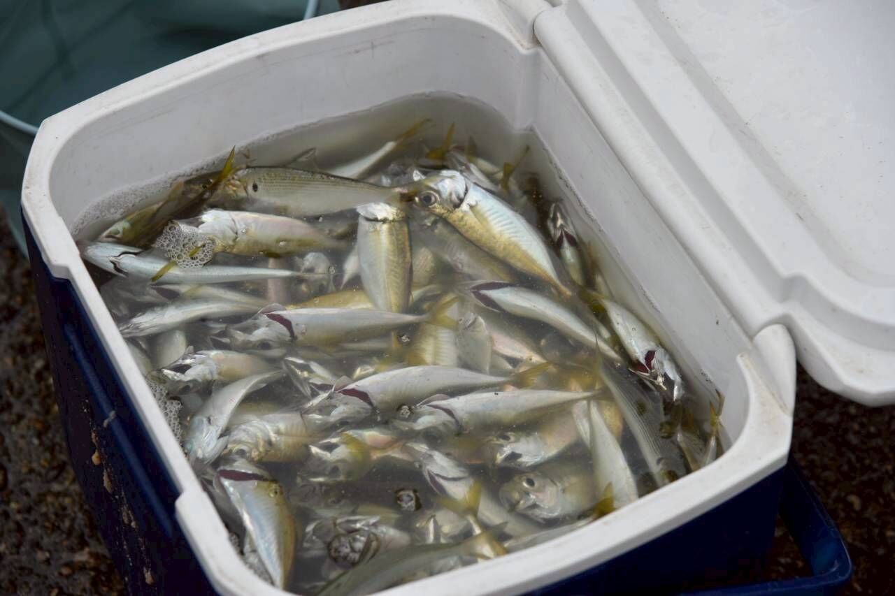 全員でクーラーボックスいっぱいの小アジなどを釣りました。