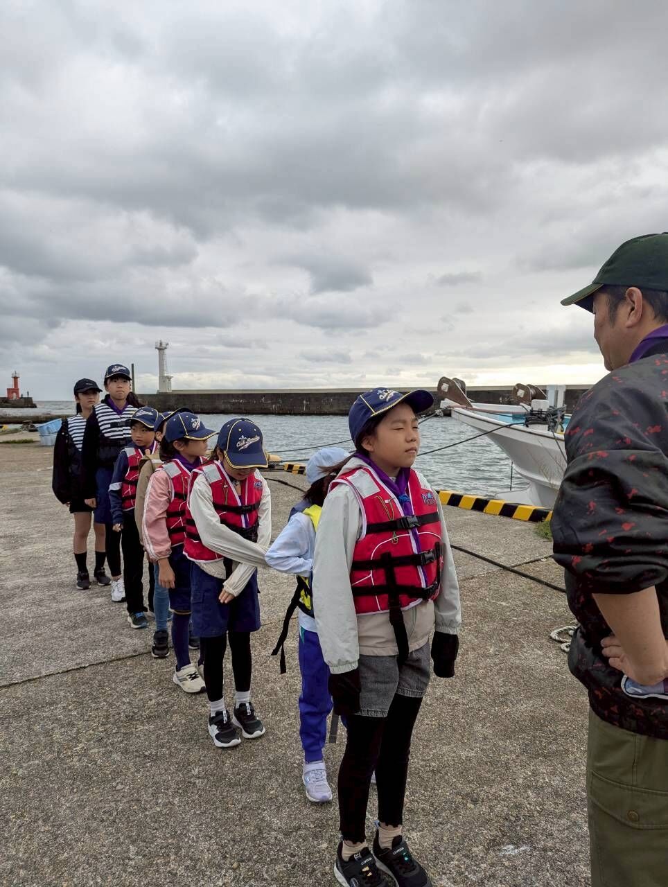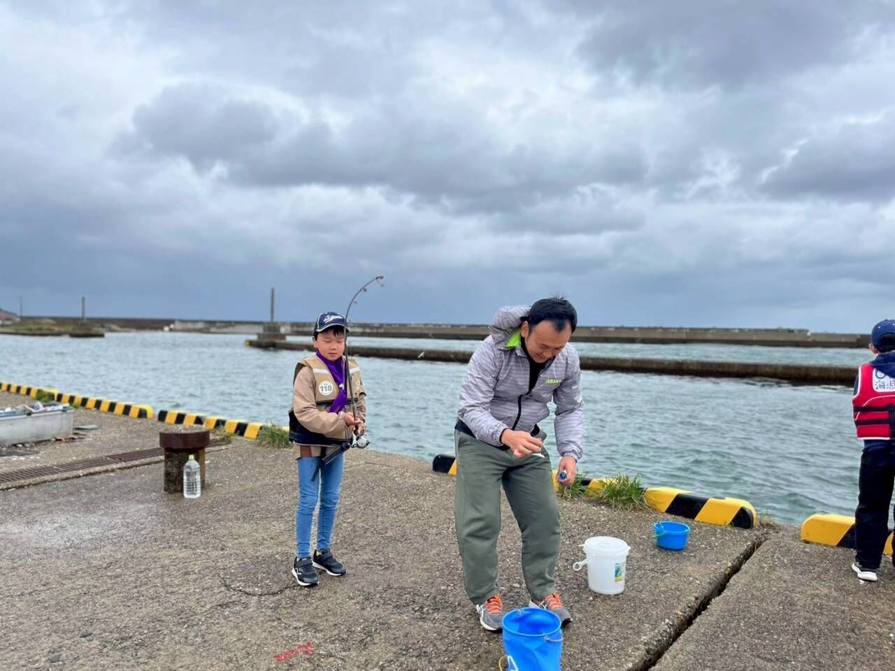 あいにくの曇り空の中、天候に不安を感じつつも魚釣りの活動を行いました。