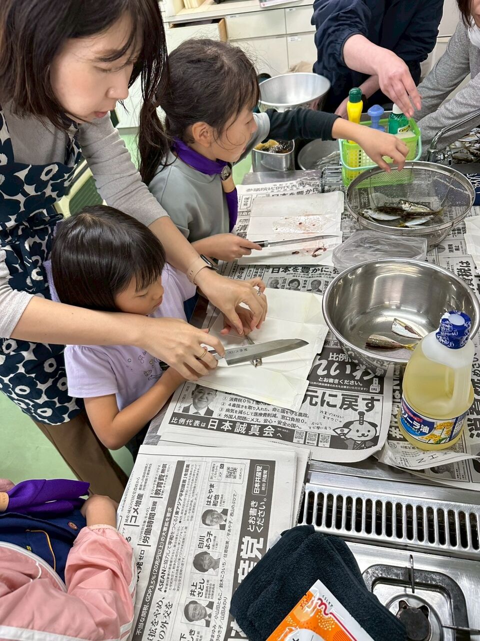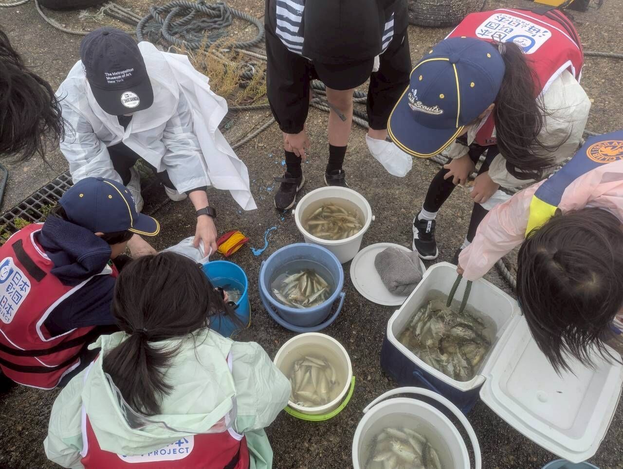 今年は釣れること釣れること。リーダーや保護者は釣針から外したり、からまった釣糸を解くのにてんやわんやです。