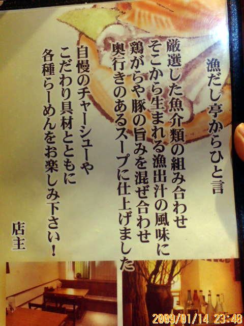誌めは錦糸町まで戻って(ホテルがあるから)和製ラーメン 漁だし亭 S社M君 と