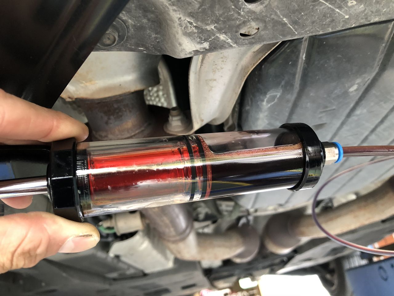 ピストンの半分には新油が入っているため、負圧で吸われたオイルと汚れ具合をチェックできます