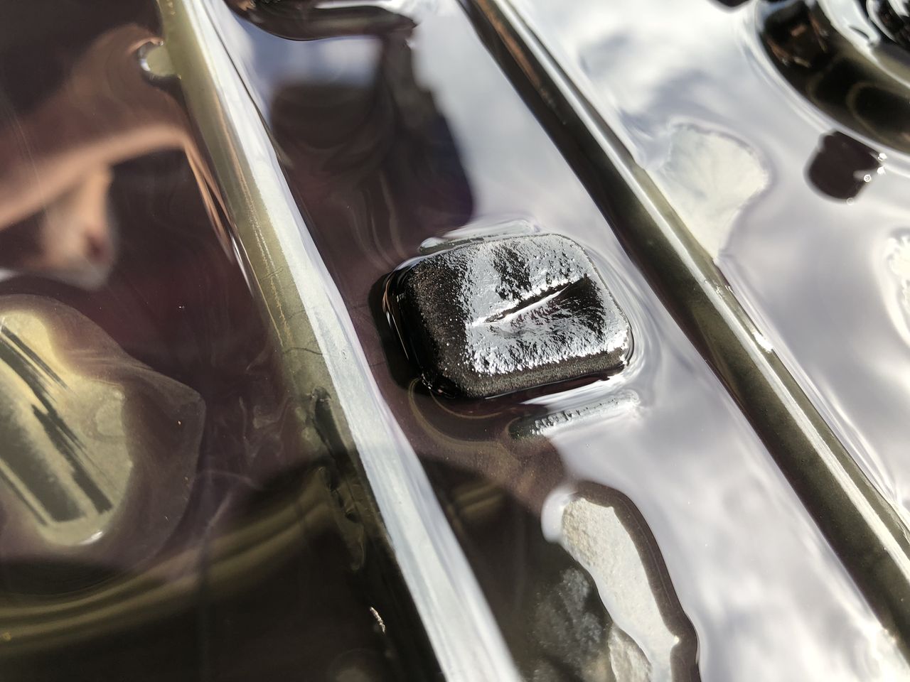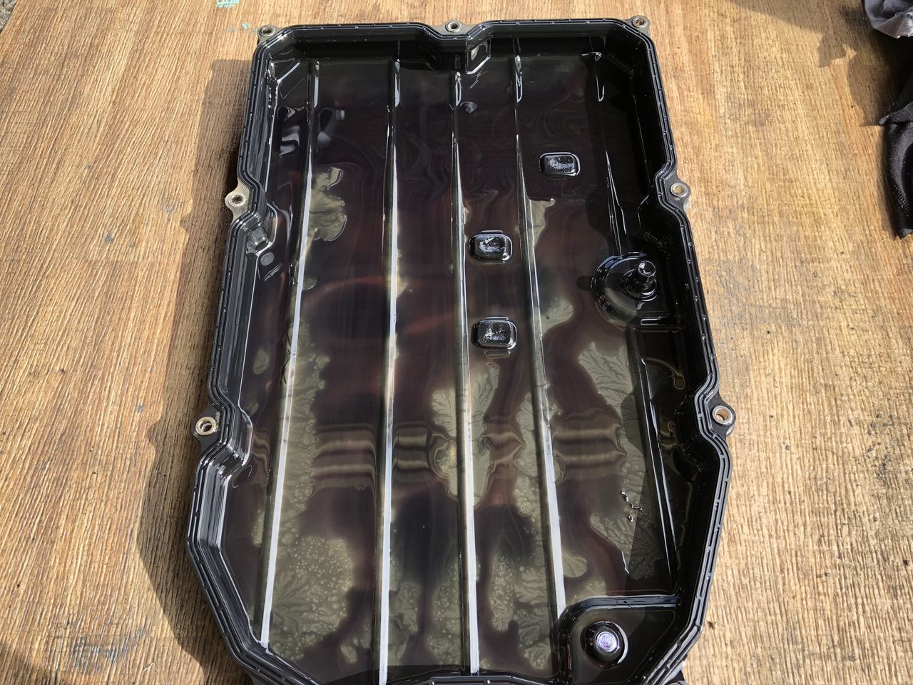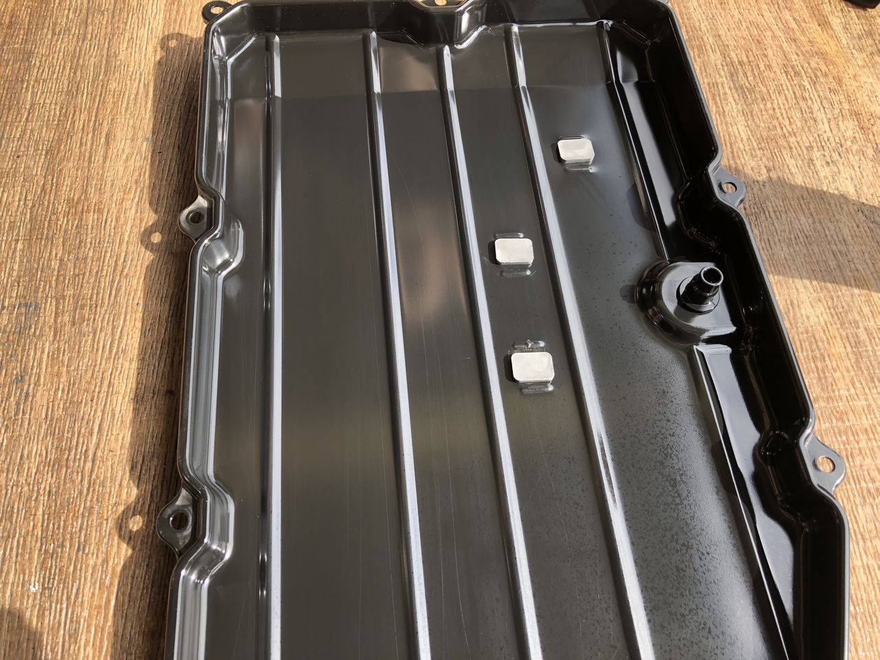 マグネットをもとの位置に戻し、オイルパンをパーツクリーナーで洗い流します