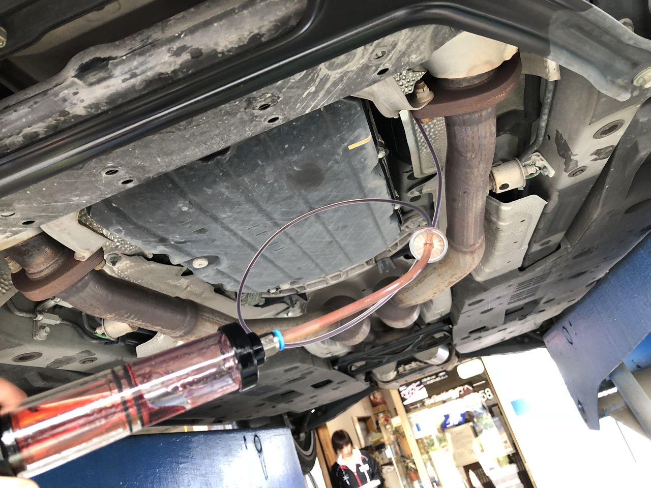レベルゲージがない車の為、メーカーの修理書に従い油量調整を行います