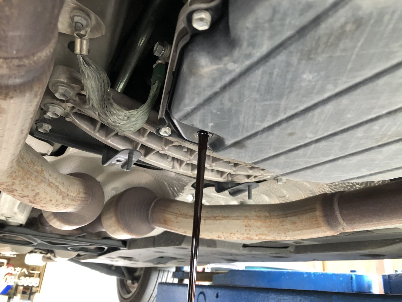 車両をリフトアップし、ATFフィラキャップを開けオイルを適量抜きます