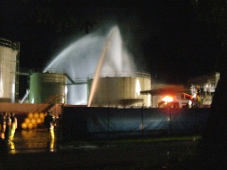 すぐ隣のガスタンク(中身は経由らしい)が大爆発!消防隊が駆けつけ緊急避難開始。「どこまで避難するのか?」「島の端まで逃げろ」「そんなの無理・・・」結局近くの防波堤で見学?していた。みんなで、次の爆発で一気に海へ飛び込むぞ!って決めていたら、ラウンジのスタッフ2名が「私たち泳げないってカタコトの日本語」「いざとなったら何とかなるよ」っていい加減な会話をしながら待つこと約2時間。やっと沈下したのが夜の9時を回った頃、夕食を食べていないことに気付くと急に腹が減った。でも、近所の店は臨時休業。仕方なく、各自お菓子を持ち寄りビールで乾杯。孟大丈夫となったら、ラウンジの女の子のテンションが↑↑。携帯で友達を呼んで、爆発の説明に必死。なんだかんだ、大盛り上がりの夜でした。