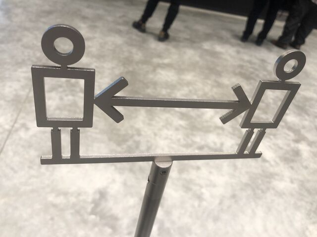 写真は、角川武蔵野ミュージアムのソーシャルディスタンス表示